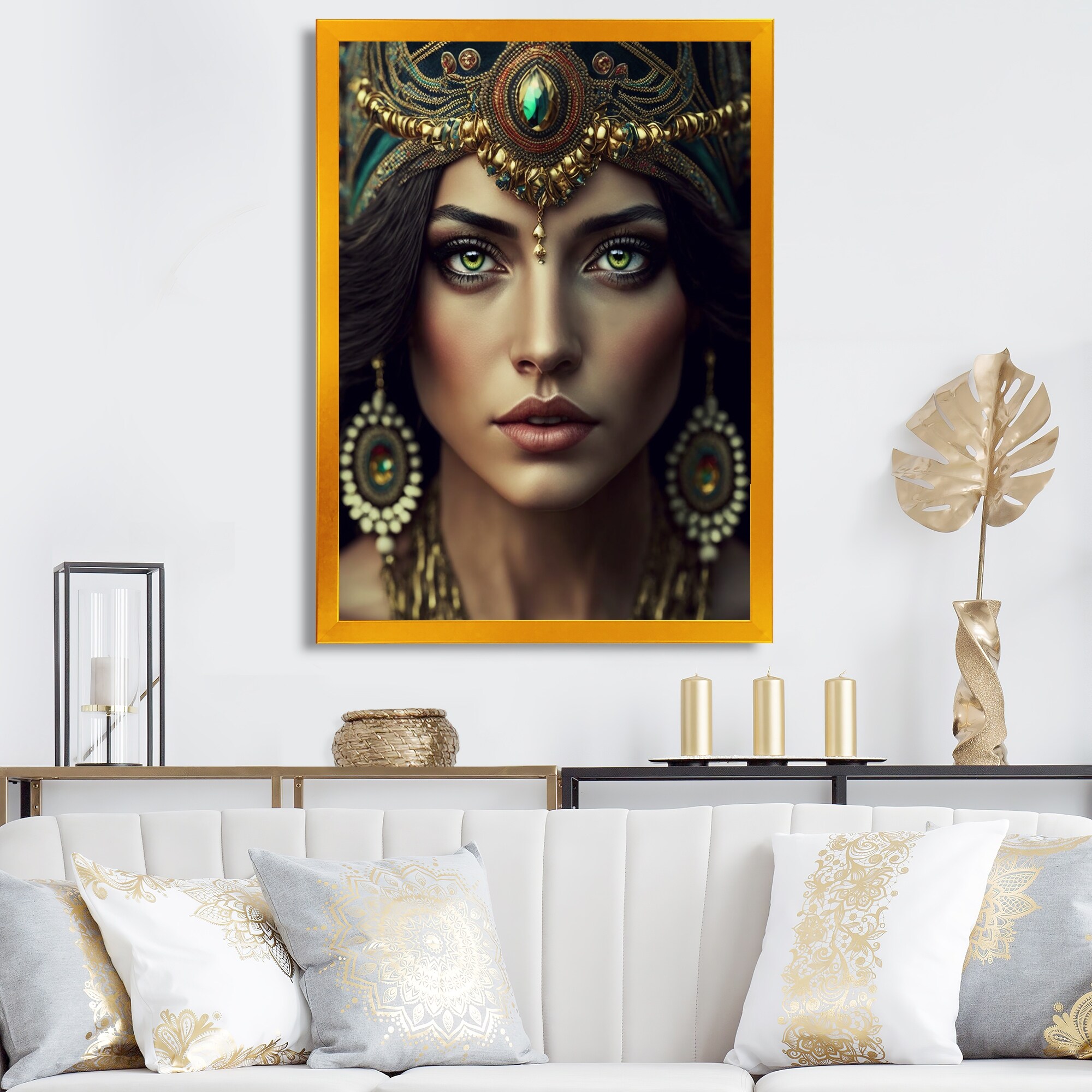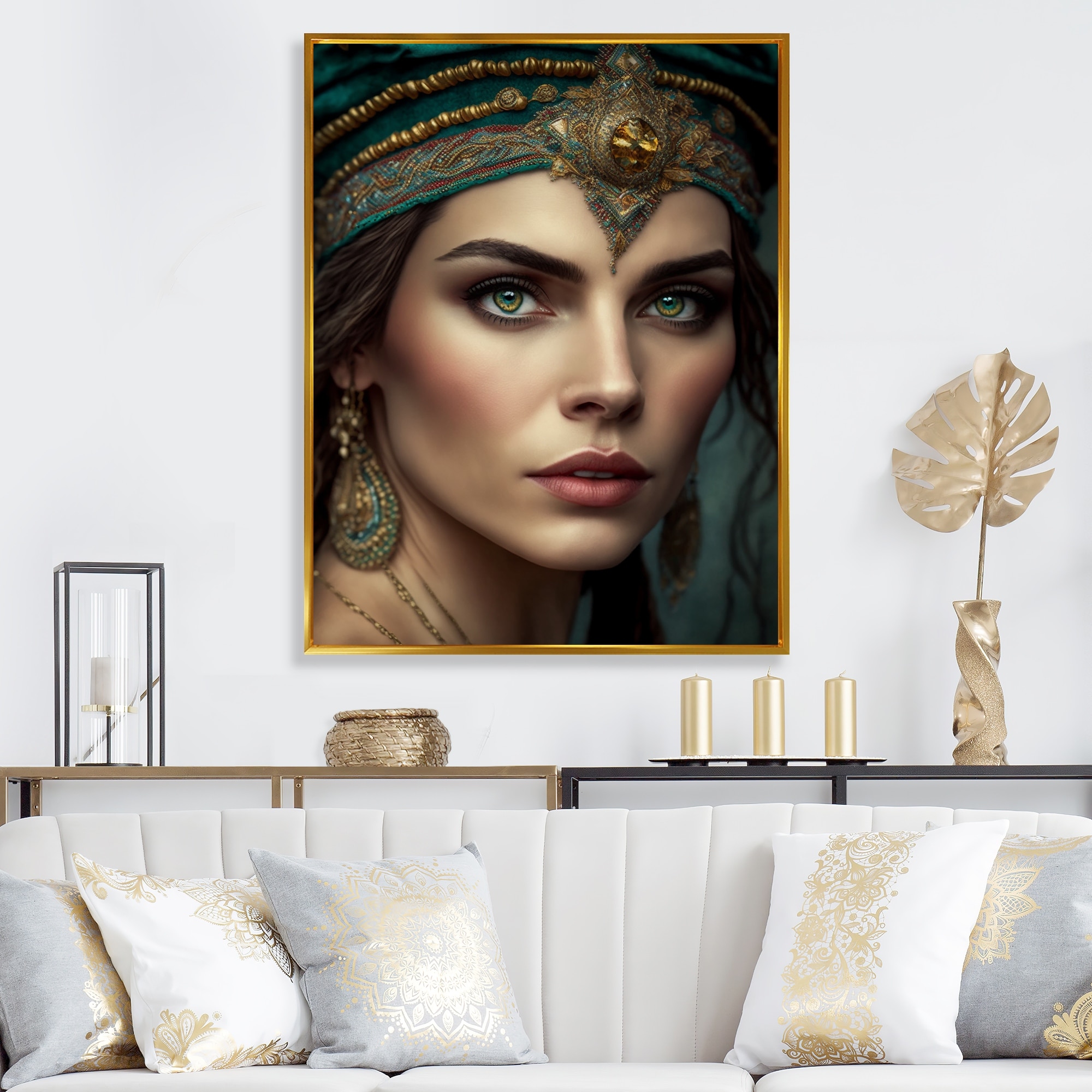 Designart "Bohemian Woman With Green Eyes II" Boho Woman Framed Canvas Art Print