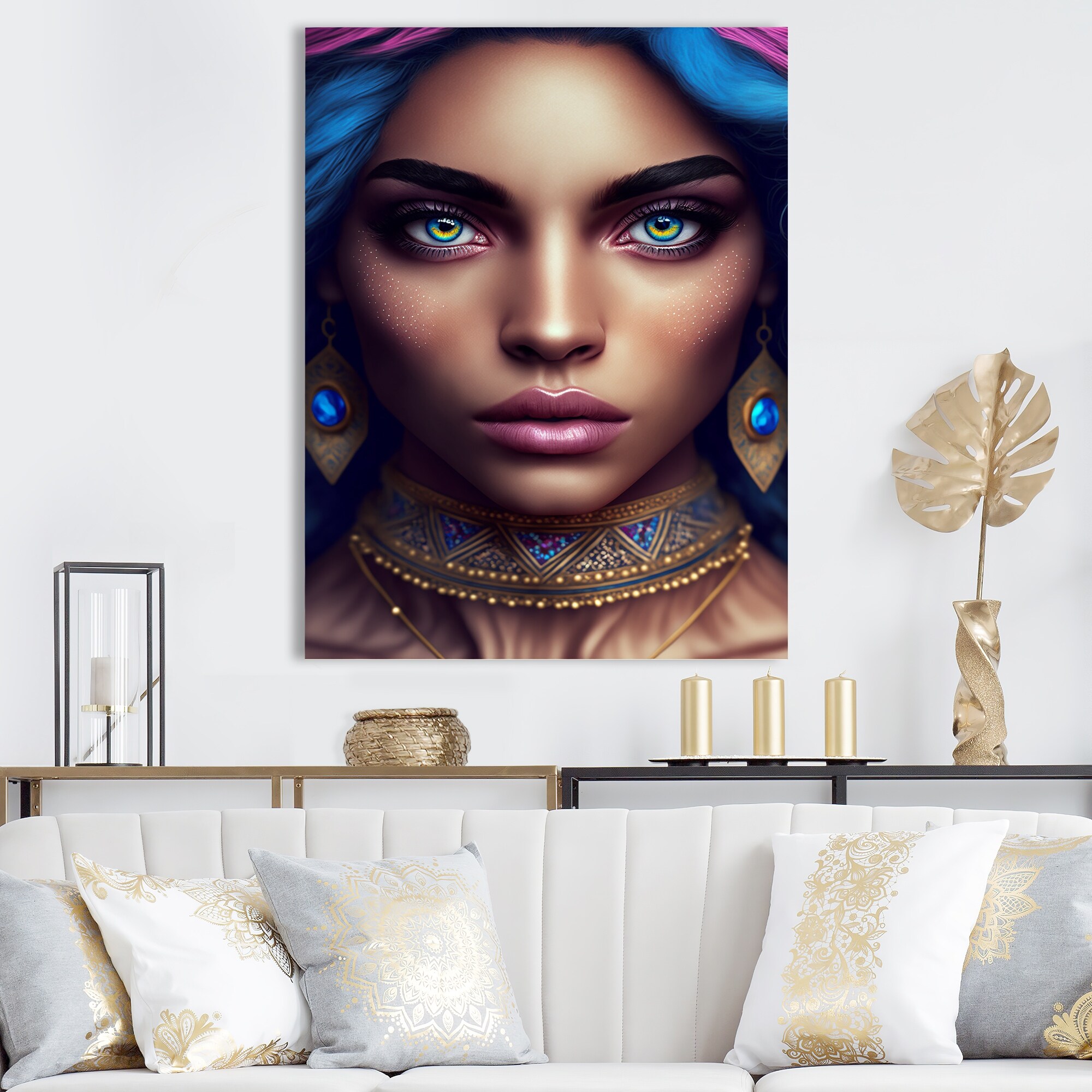 Designart "Bohemian Woman With Blue Eyes II" Boho Woman Canvas Art Print