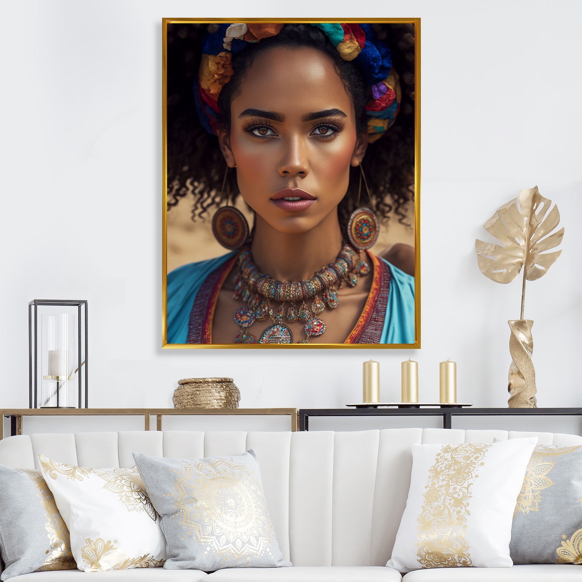 Designart "Bohemian Woman With Blue Eyes VIII" Boho Woman Framed Canvas Wall Art Print