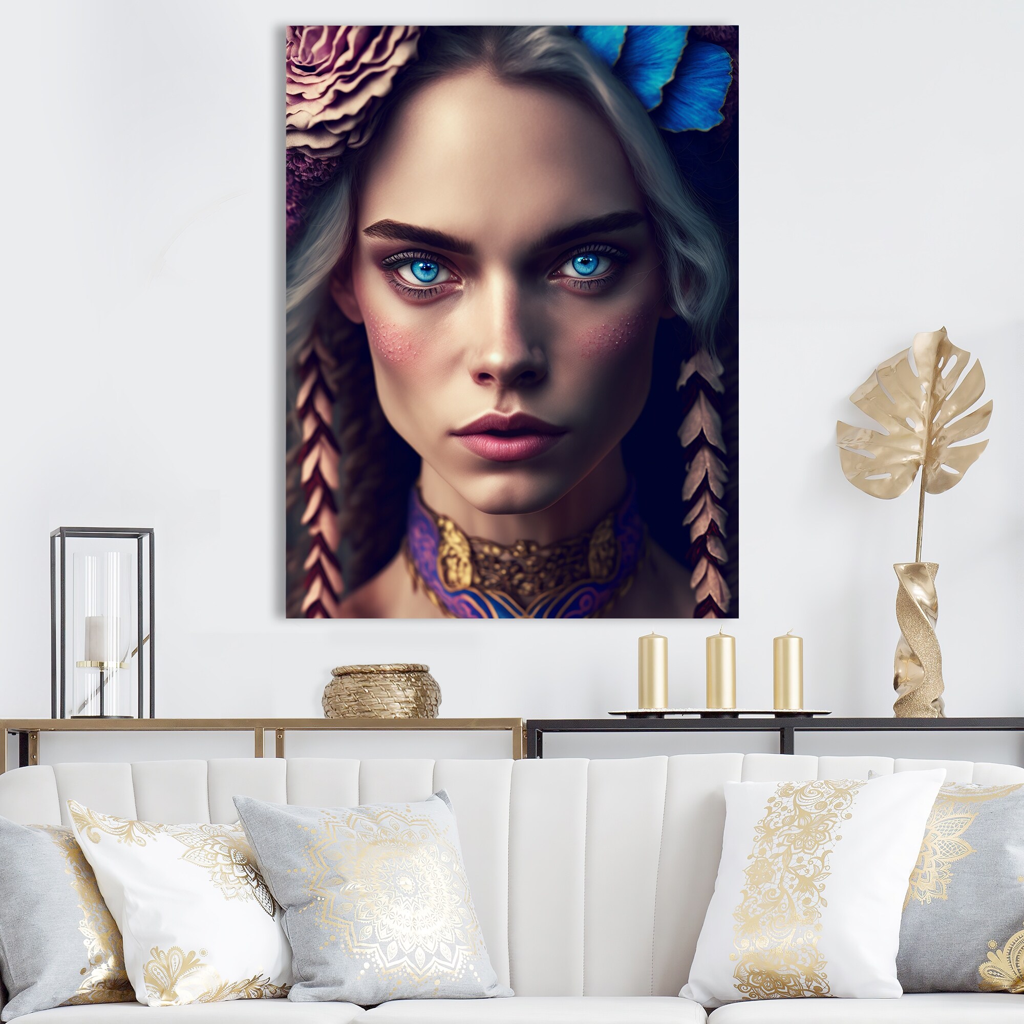 Designart "Bohemian Woman With Blue Eyes VI" Boho Woman Canvas Print