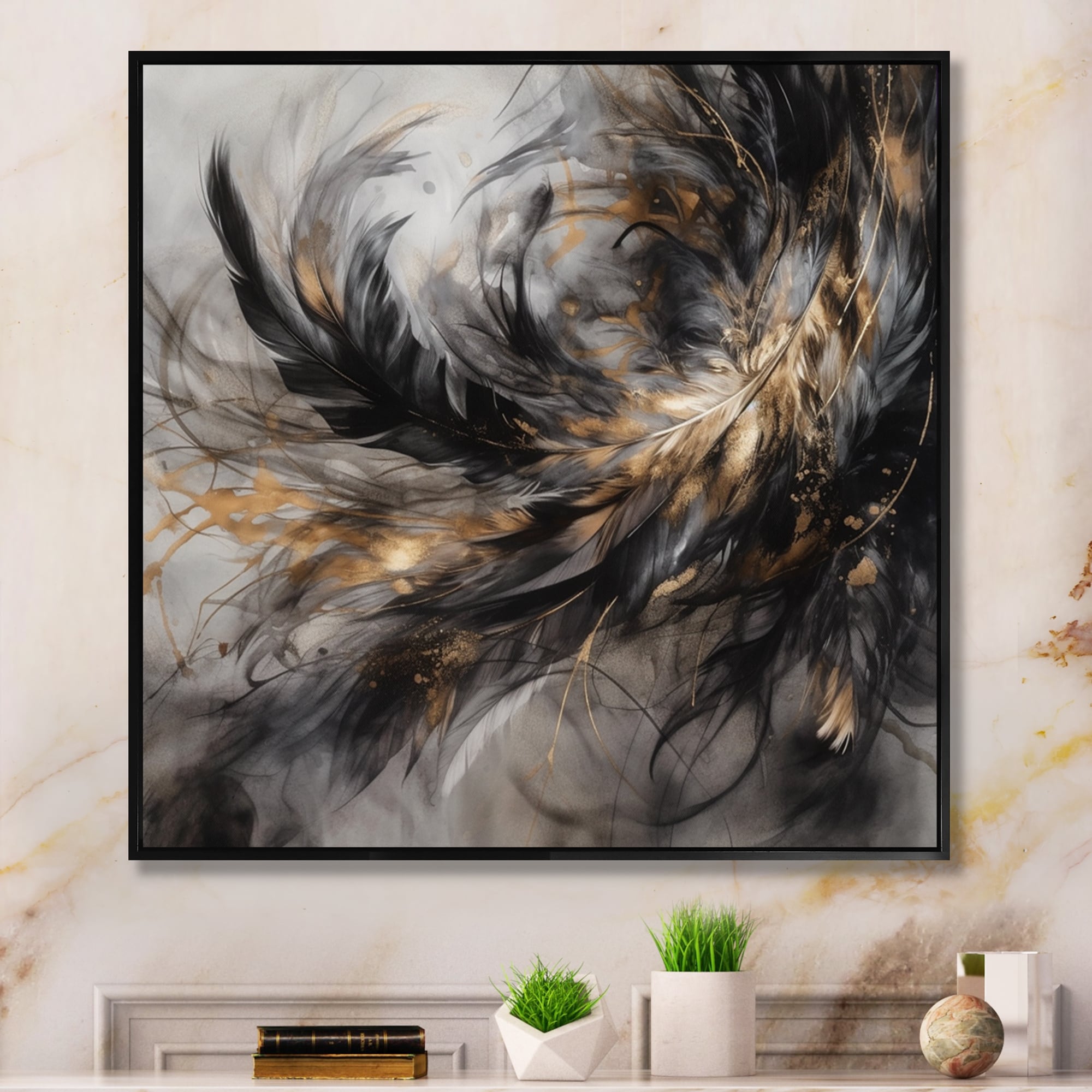 Designart "Gold And Black Expressions of Freedom I" Boho Feather Framed Canvas Prints