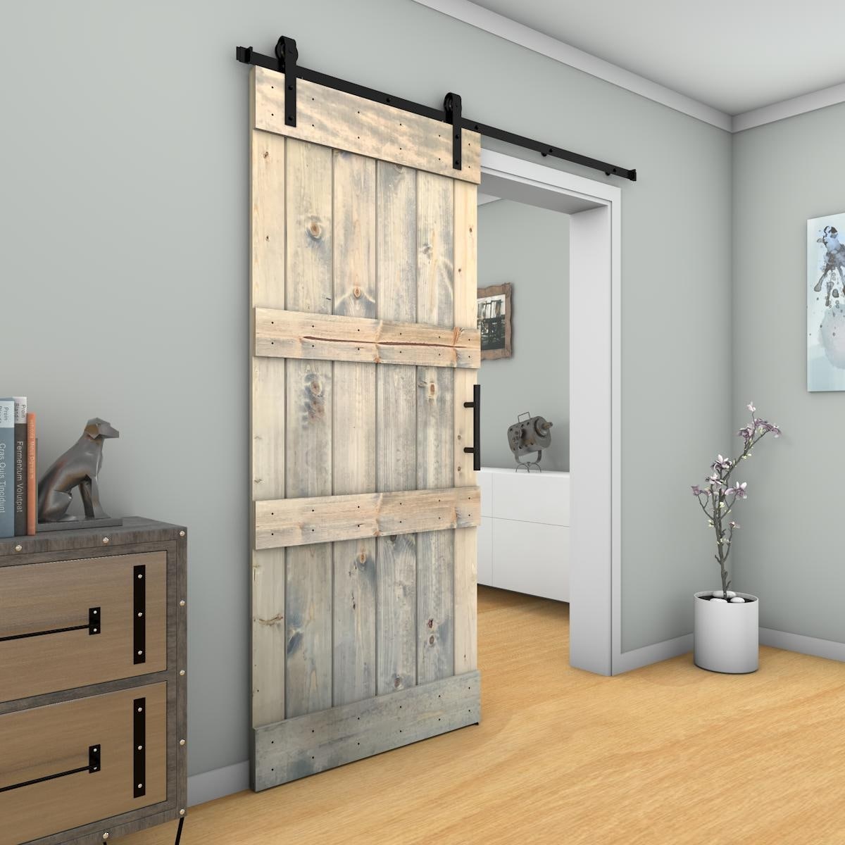DIY Sliding Barn Wood Door with Hardware Kit Included,Pre-Drilled Ready to Assemble, Bar and X Brace