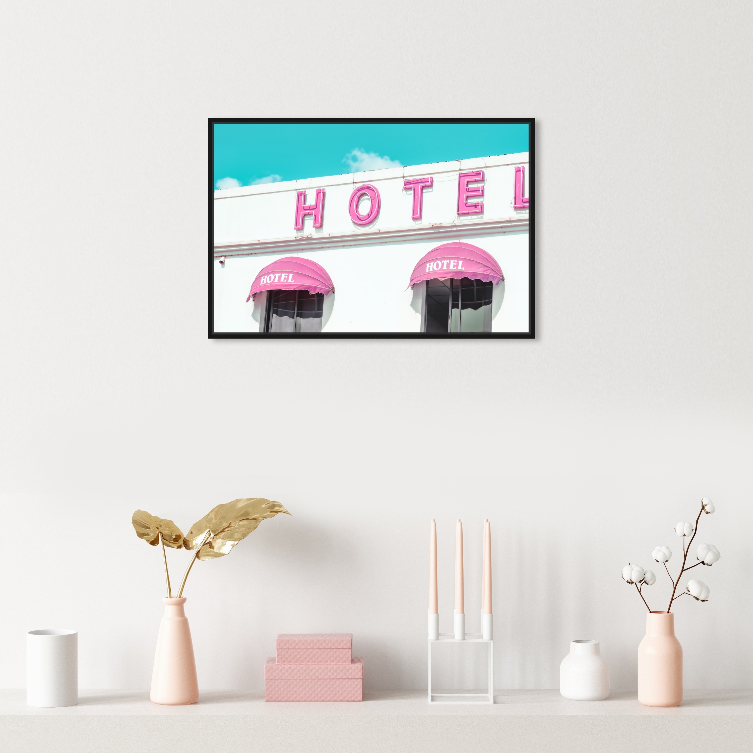 Oliver Gal 'Pink Hotel Retro' Architecture Pink Wall Art Canvas Print