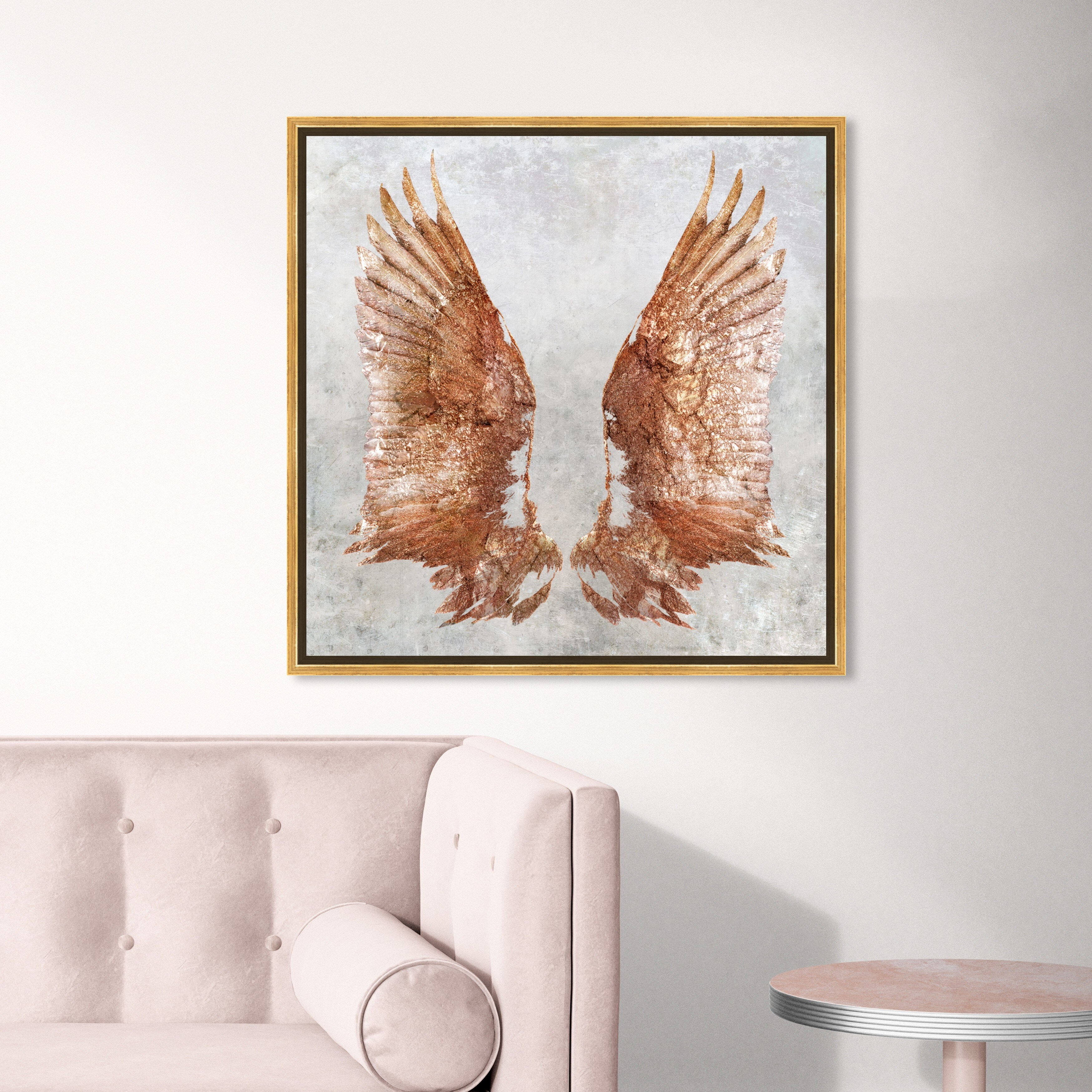 Oliver Gal Fashion and Glam Wall Art Framed Canvas Prints 'Rose Gold Wings' Wings - Pink, Gray