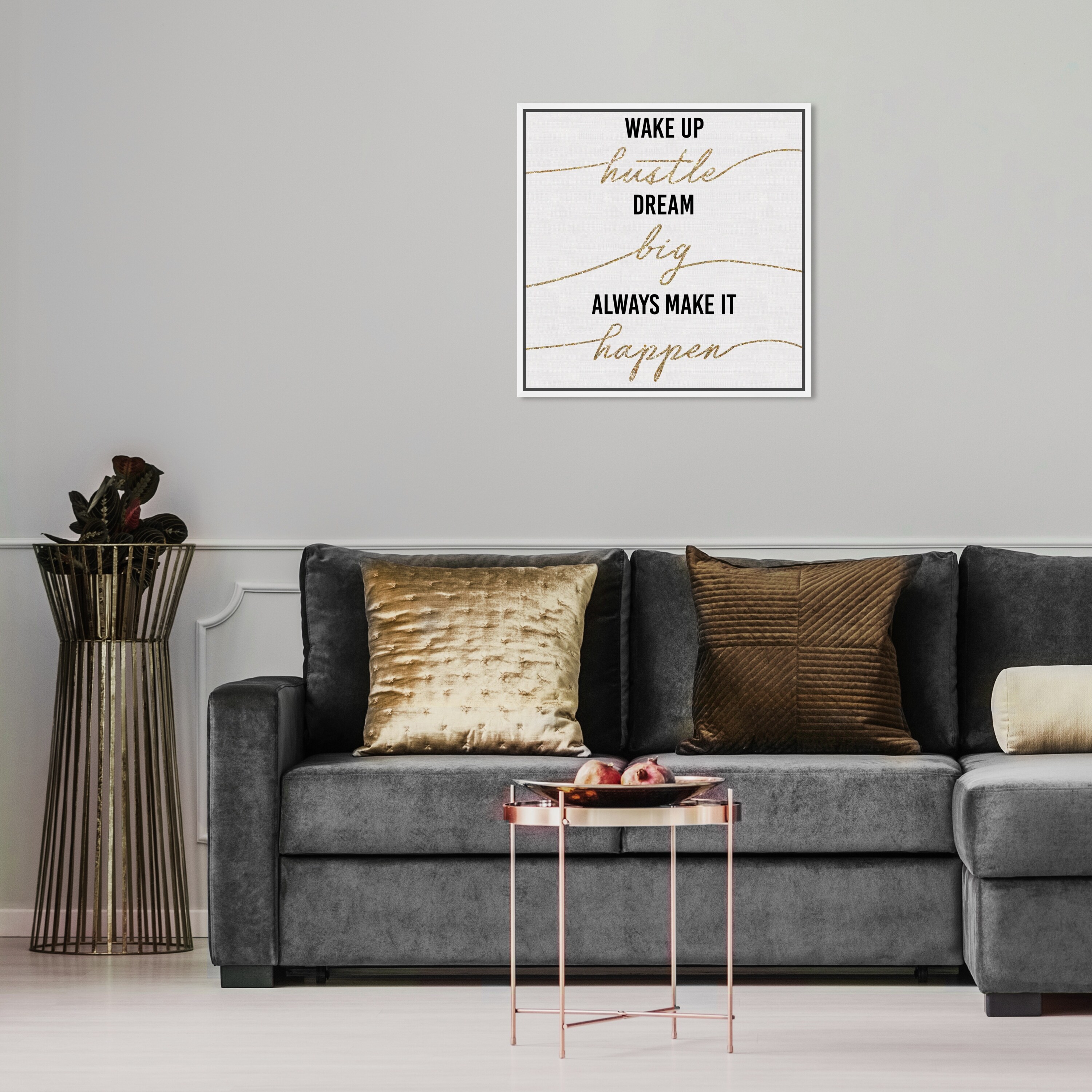 Oliver Gal 'Que Sera Gold' Typography and Quotes Wall Art Framed Canvas Print Funny Quotes and Sayings - Gold, Gray