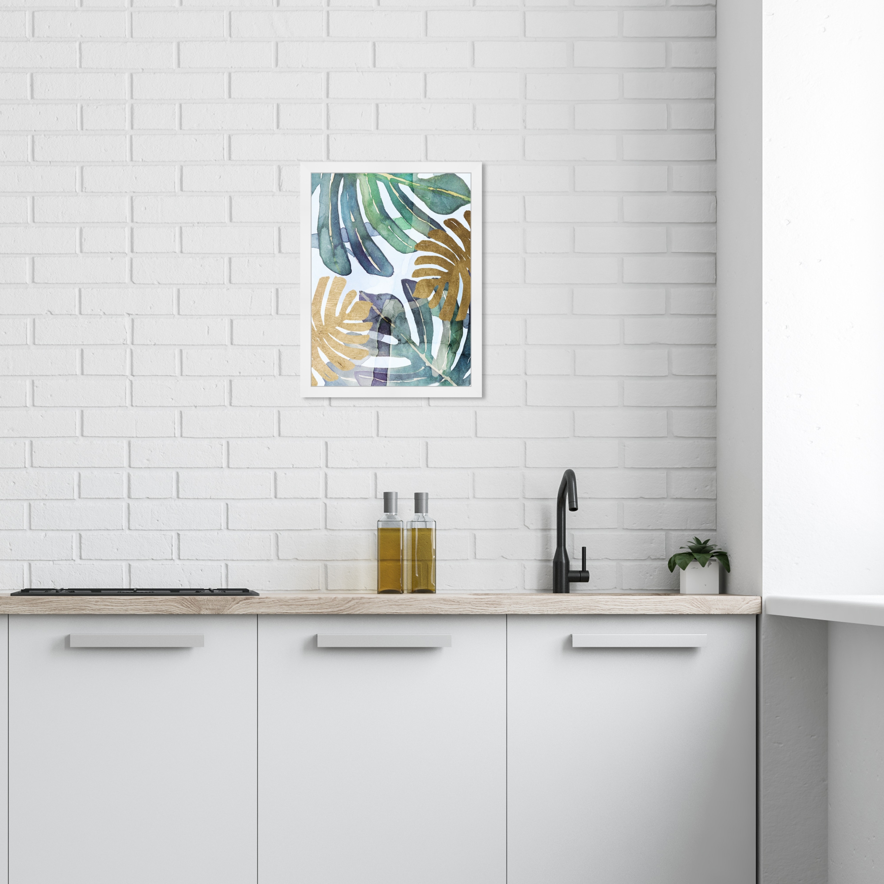 Oliver Gal 'Gold Ferns' Floral and Botanical Wall Art Framed Print Botanicals - Green, Gold
