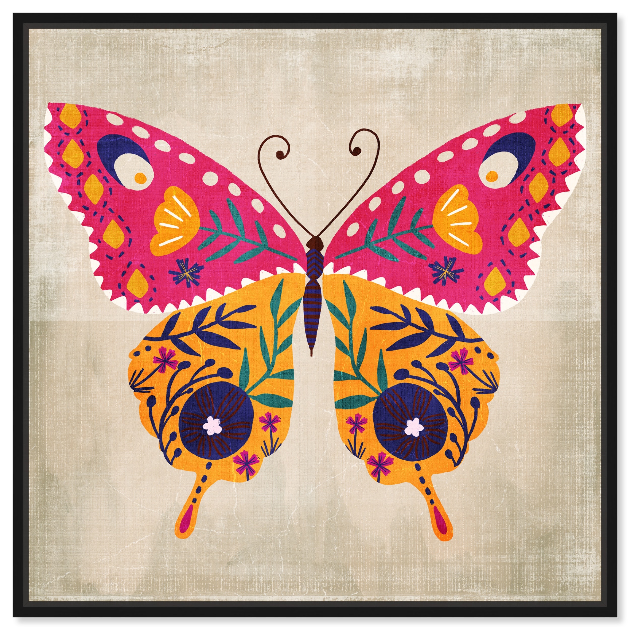 Oliver Gal 'Colorful Butterfly Wings Floral Pattern' Framed Canvas Art Print