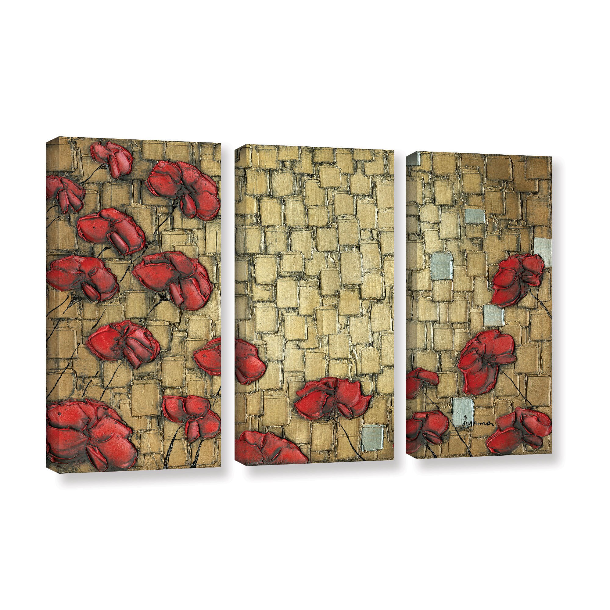 ArtWall Susanna Shaposhnikova's Poppy 2, 3 Piece Gallery Wrapped Canvas Set - Multi