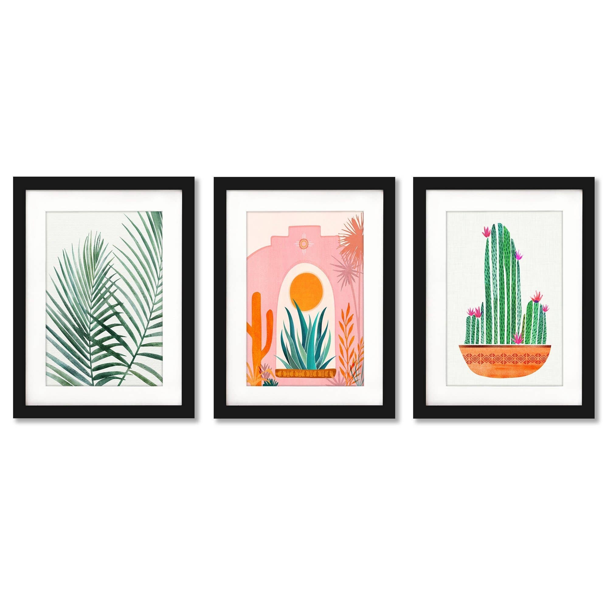 Cactus Blossoms Modern Tropical Modern Tropical - 3 Piece Framed Gallery Art Set