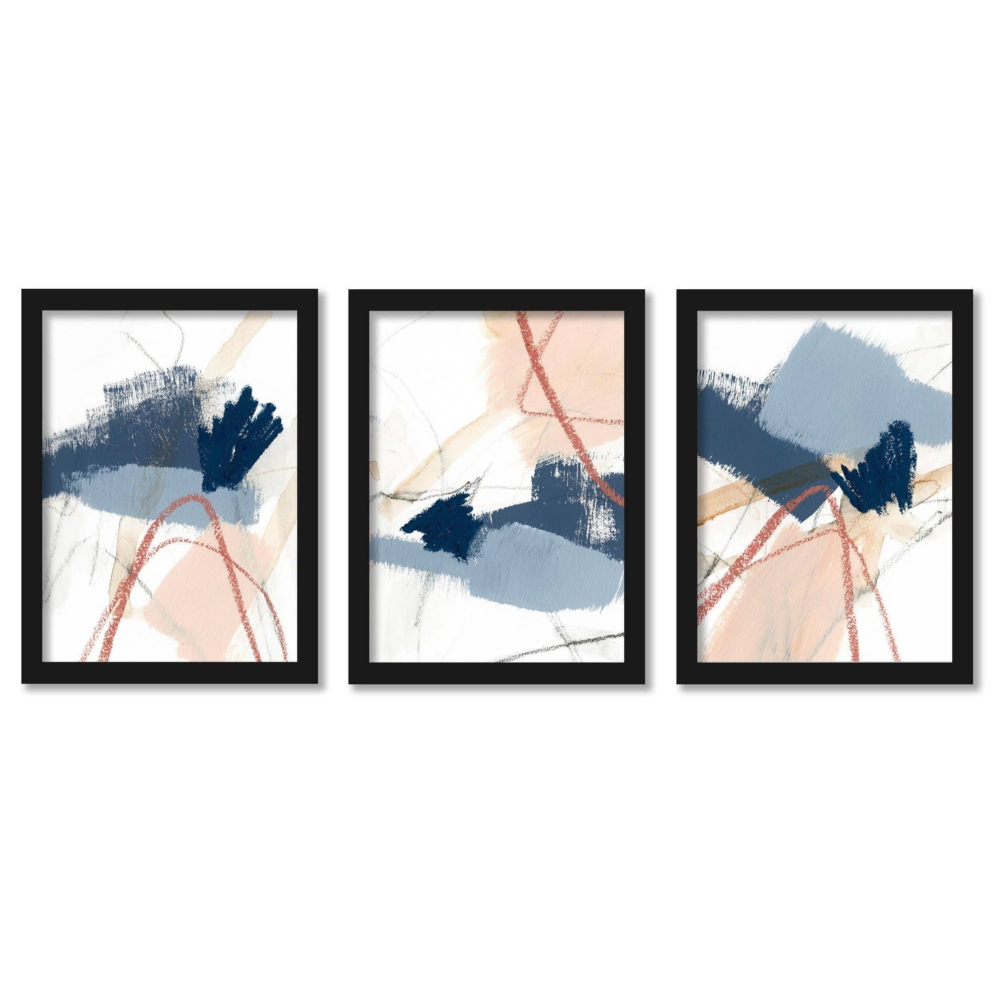 Blue Shuffle Victoria Barnes Abstract 4 - 3 Piece Framed Gallery Art Set