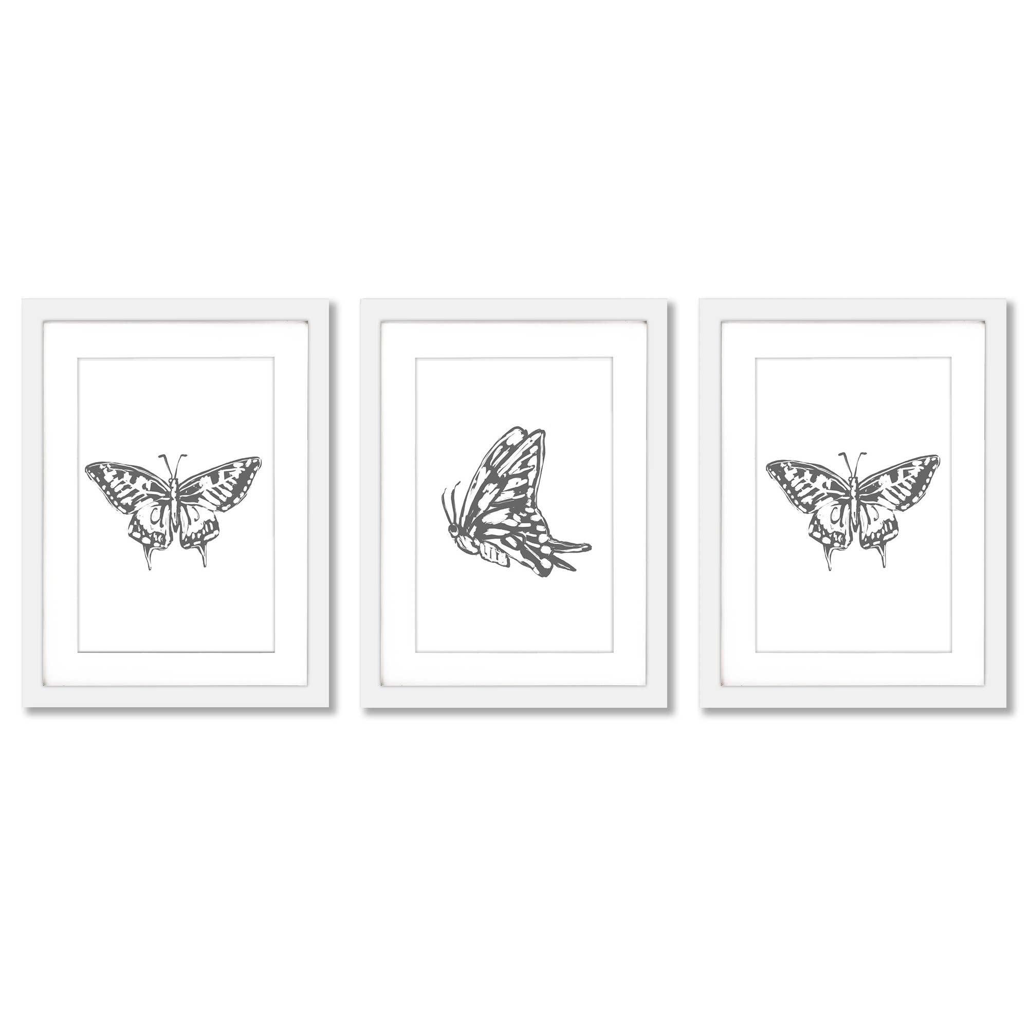 Butterfly Sketch Jetty Home Contemporary - 3 Piece Framed Gallery Art Set