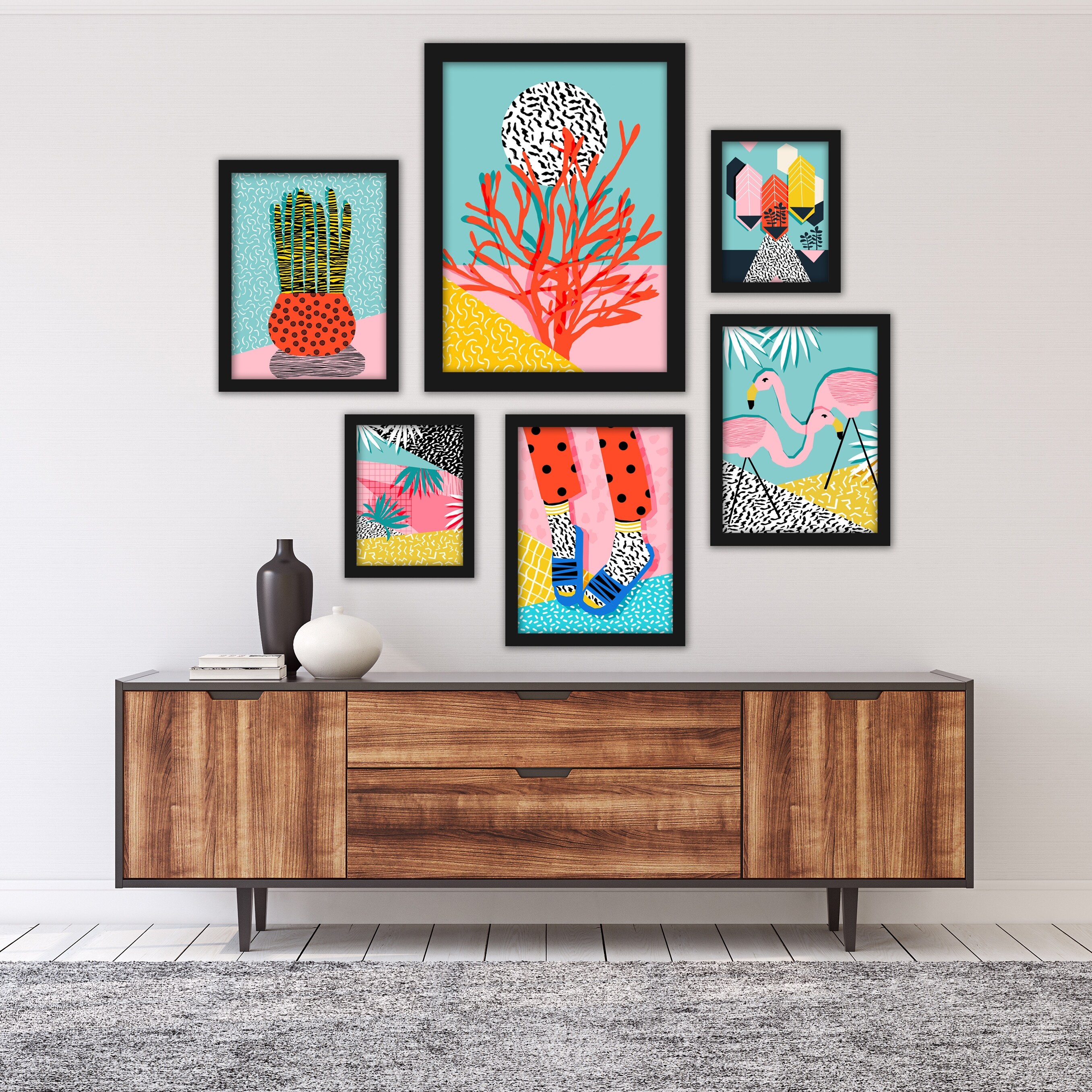 Funky Modern Tropical 6 Piece Framed Print Gallery Wall Art Set