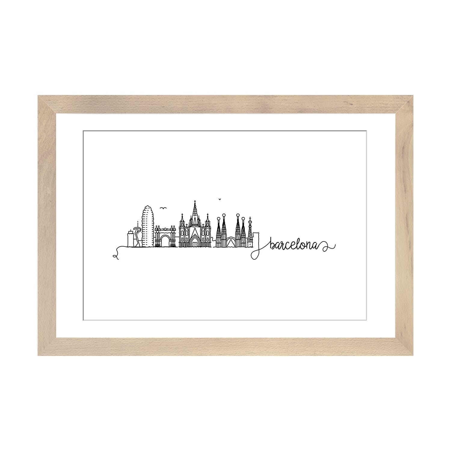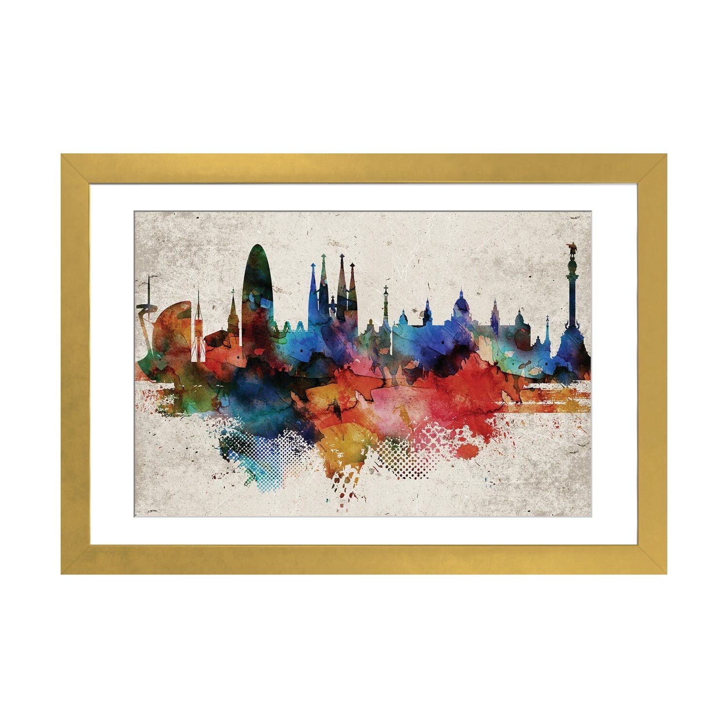 iCanvas "Barcelona, Spain City Skyline" by Ayse Deniz Akerman Framed Canvas Print