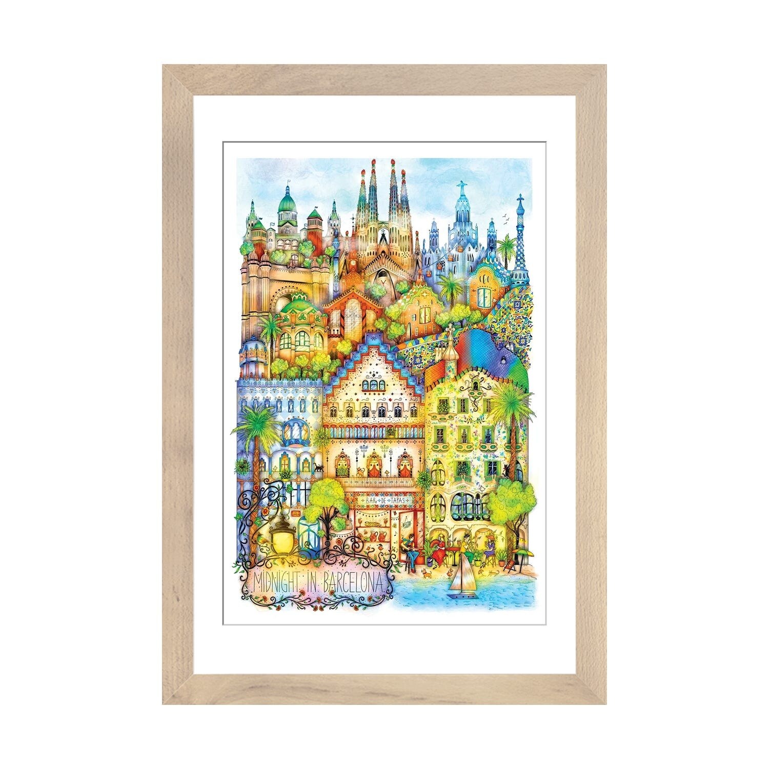 iCanvas "Barcelona View Stylized Cityscape" by Mona Edulesco Framed Canvas Print