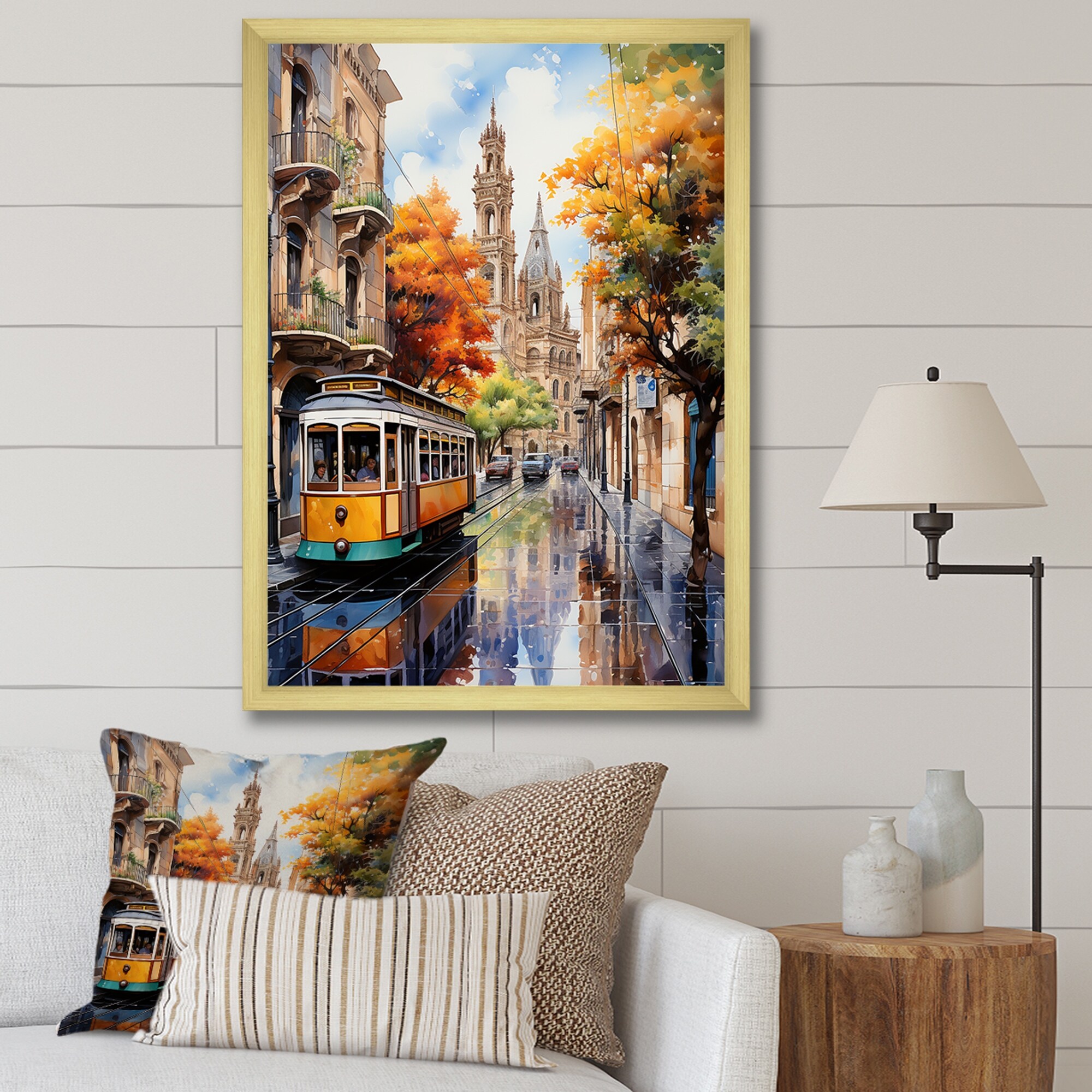 Designart "Barcelona Old World Charm Iii" City Art Deco Framed Canvas Wall Art