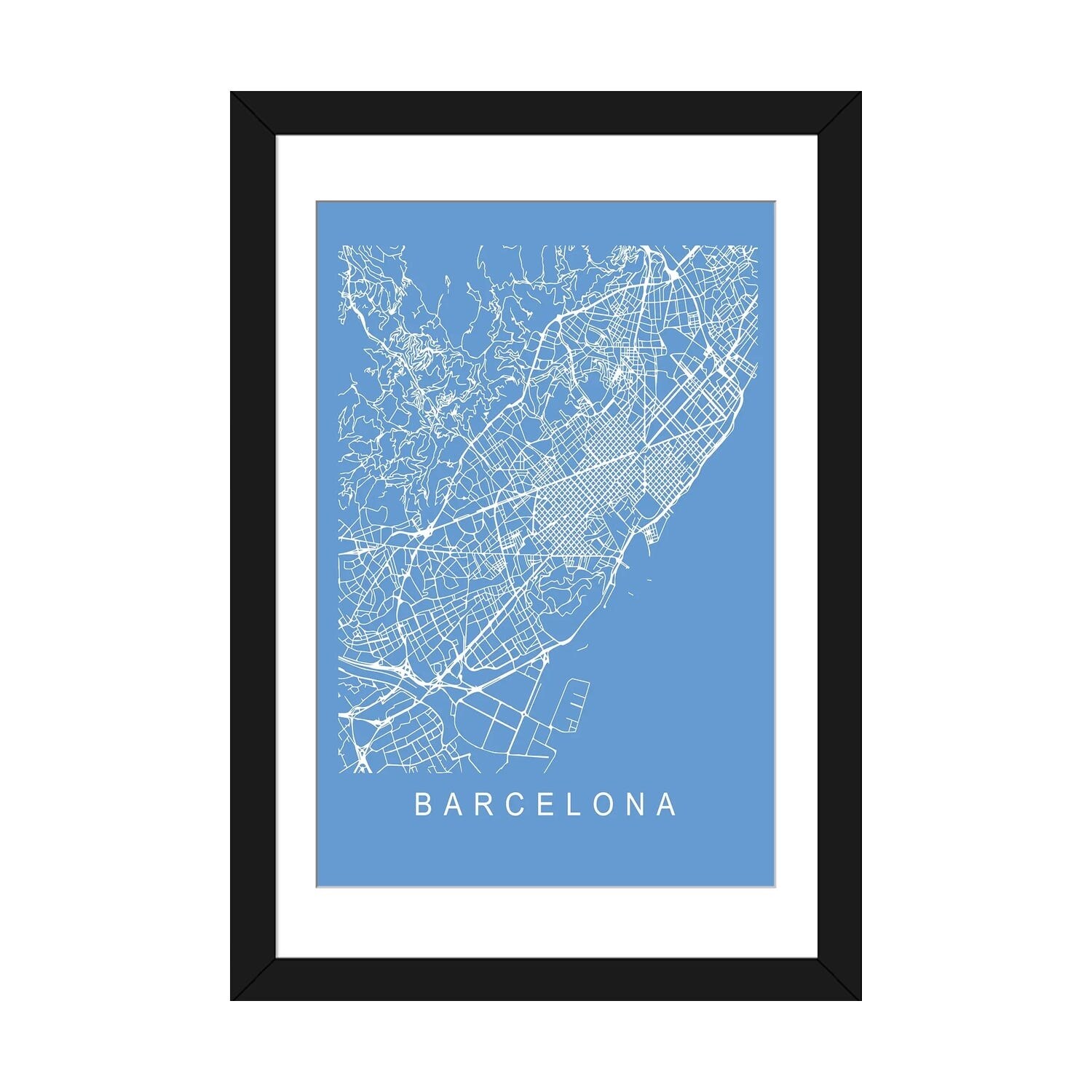iCanvas "Barcelona Map" by Mr. City Printing Framed
