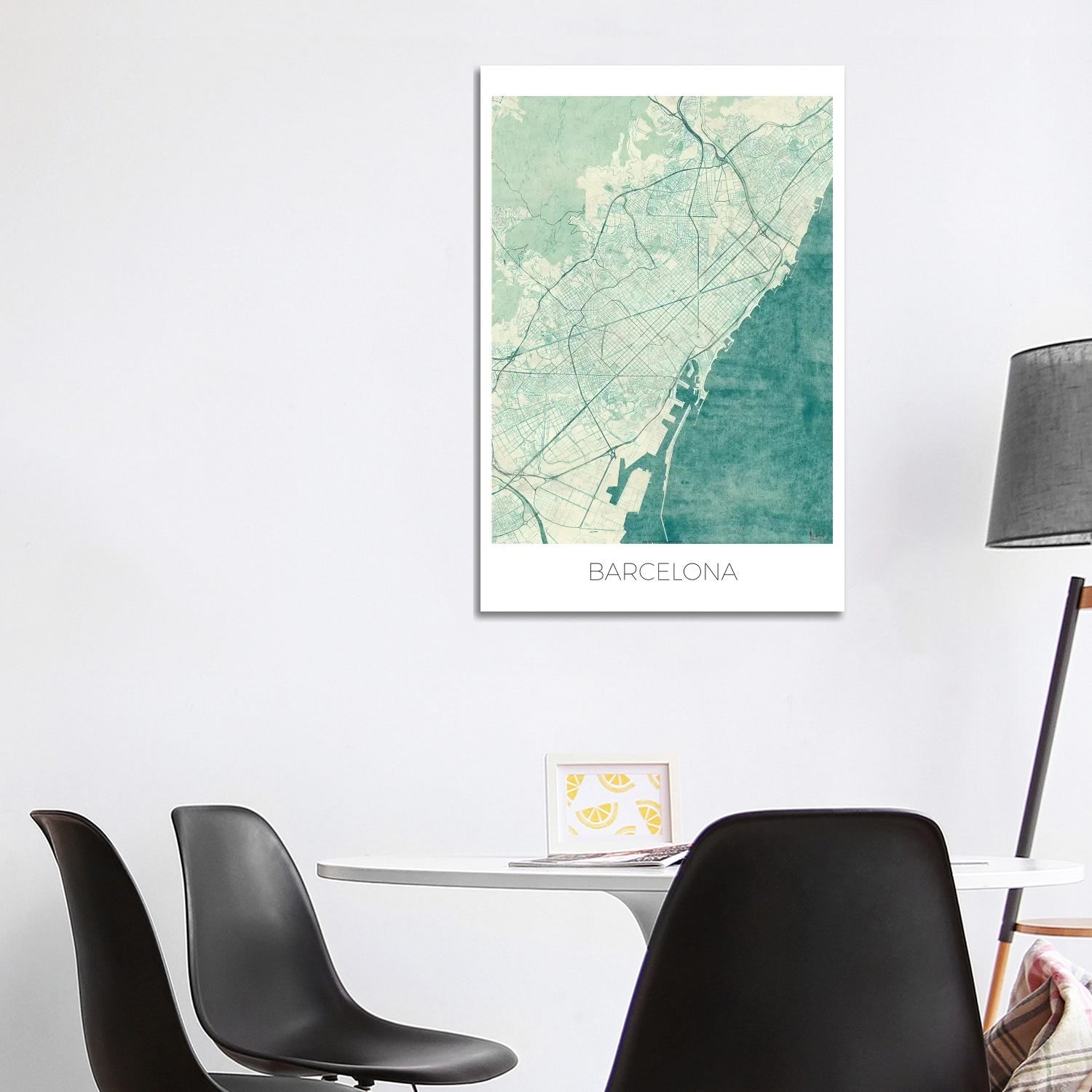 iCanvas "Barcelona Vintage Blue Watercolor Urban Blueprint Map" by Hubert Roguski Canvas Print