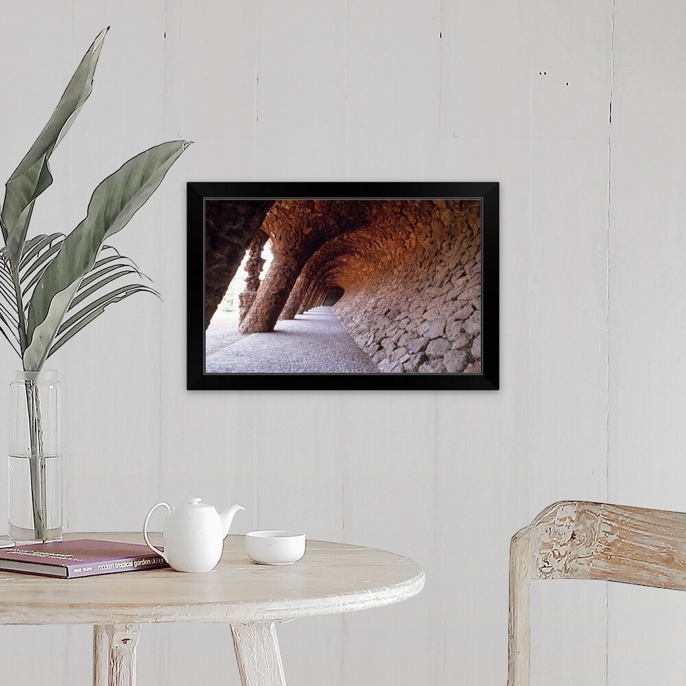 "Tunnel Gaudi Barcelona Spain" Black Framed Print