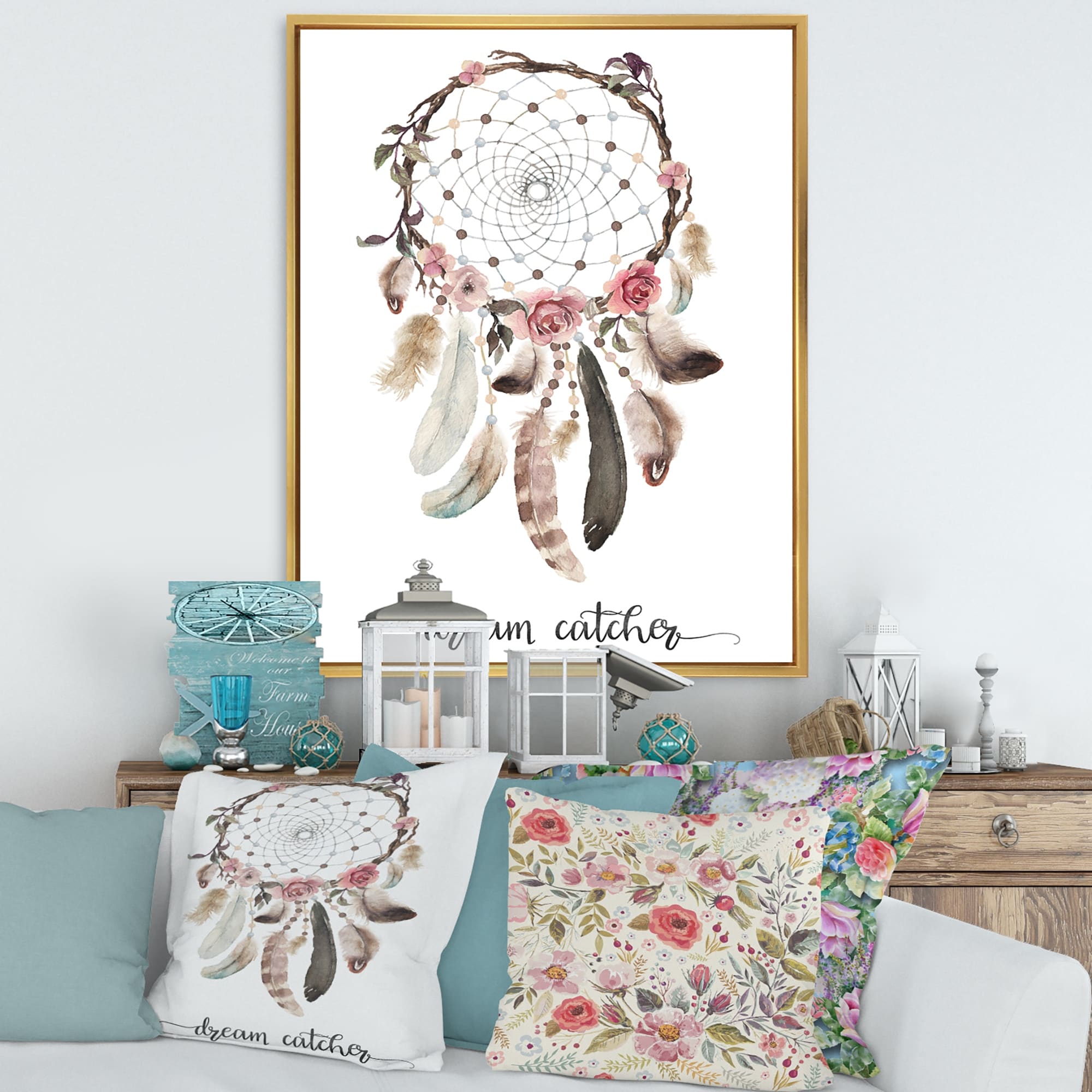 Designart "Dream Catcher With Ethnic Feathers" Bohemian & Eclectic Framed Canvas Wall Art Print