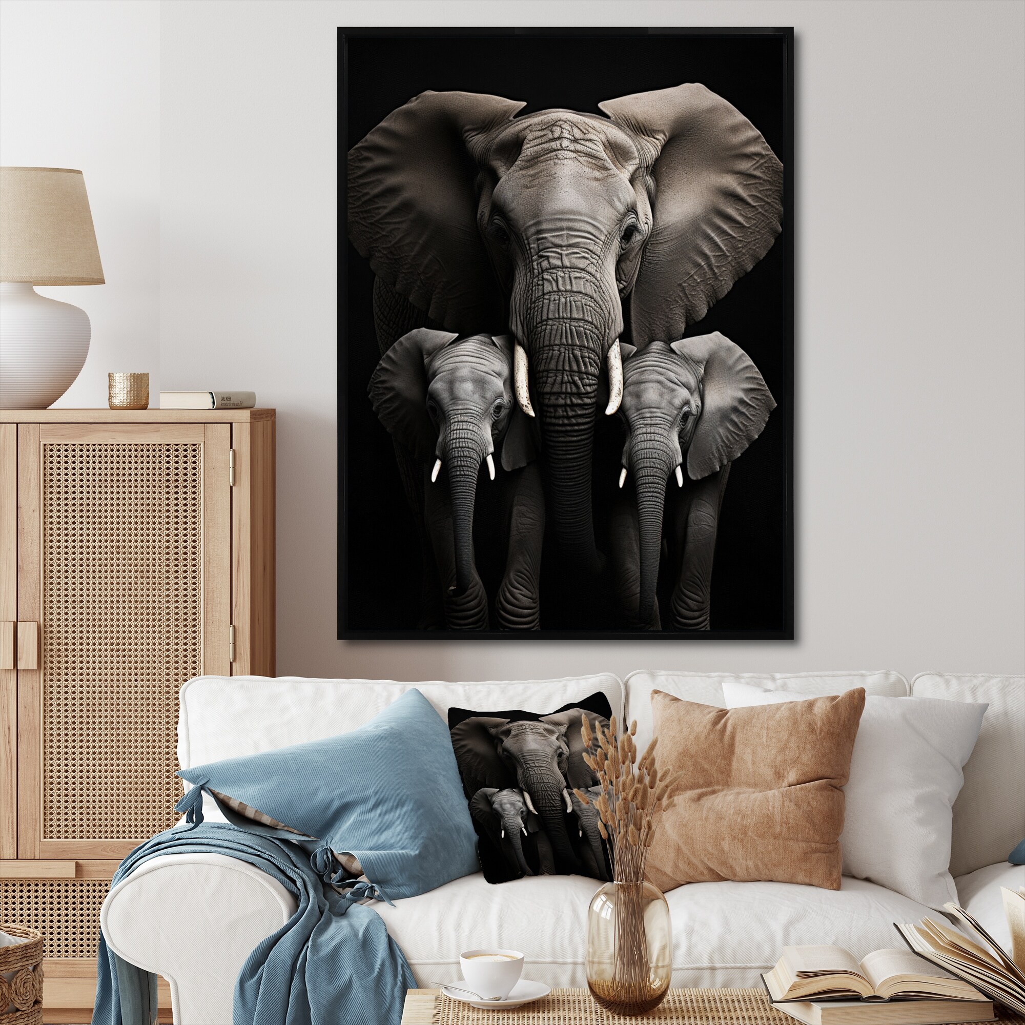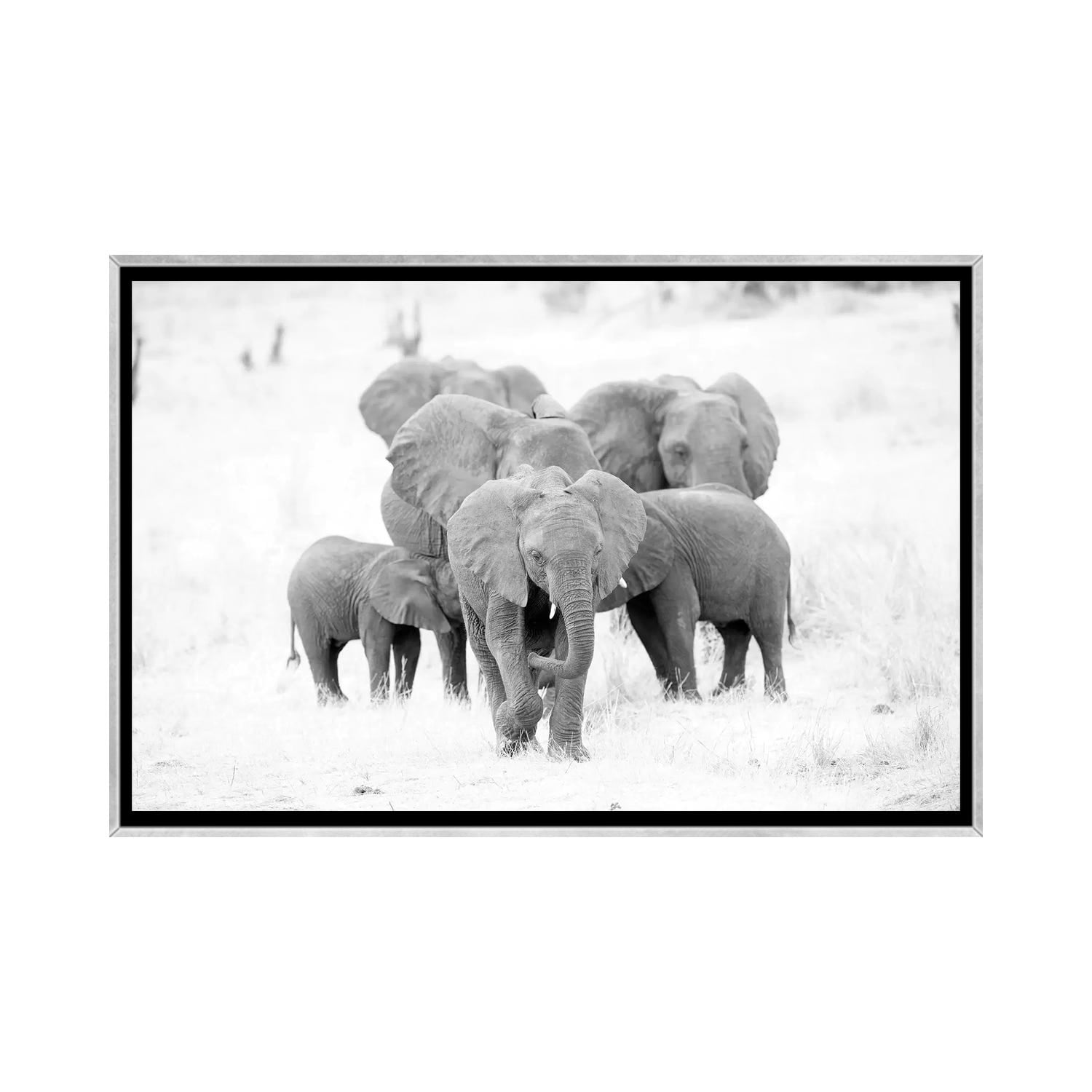 iCanvas "Elephant Family Black And White" by David Whelan Framed