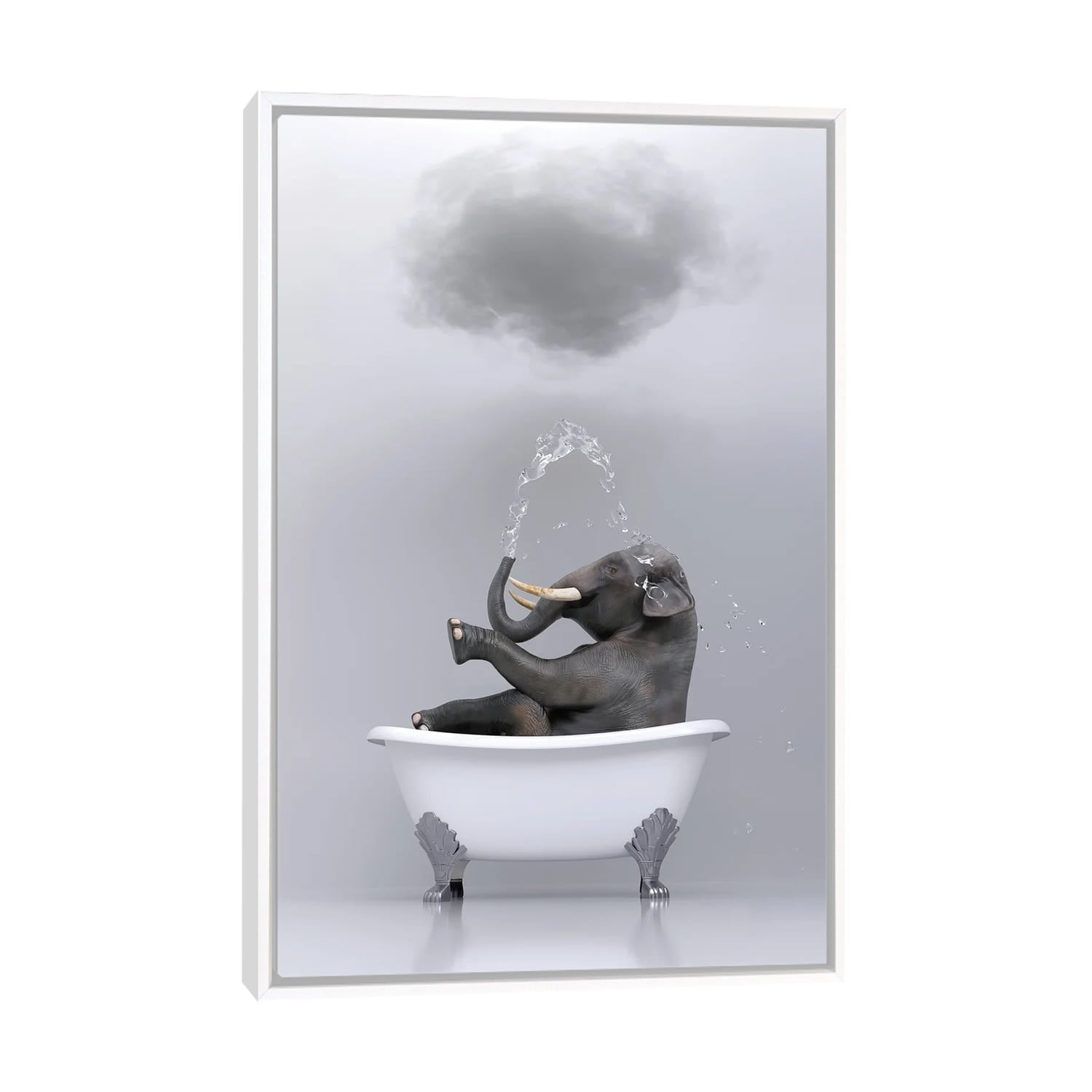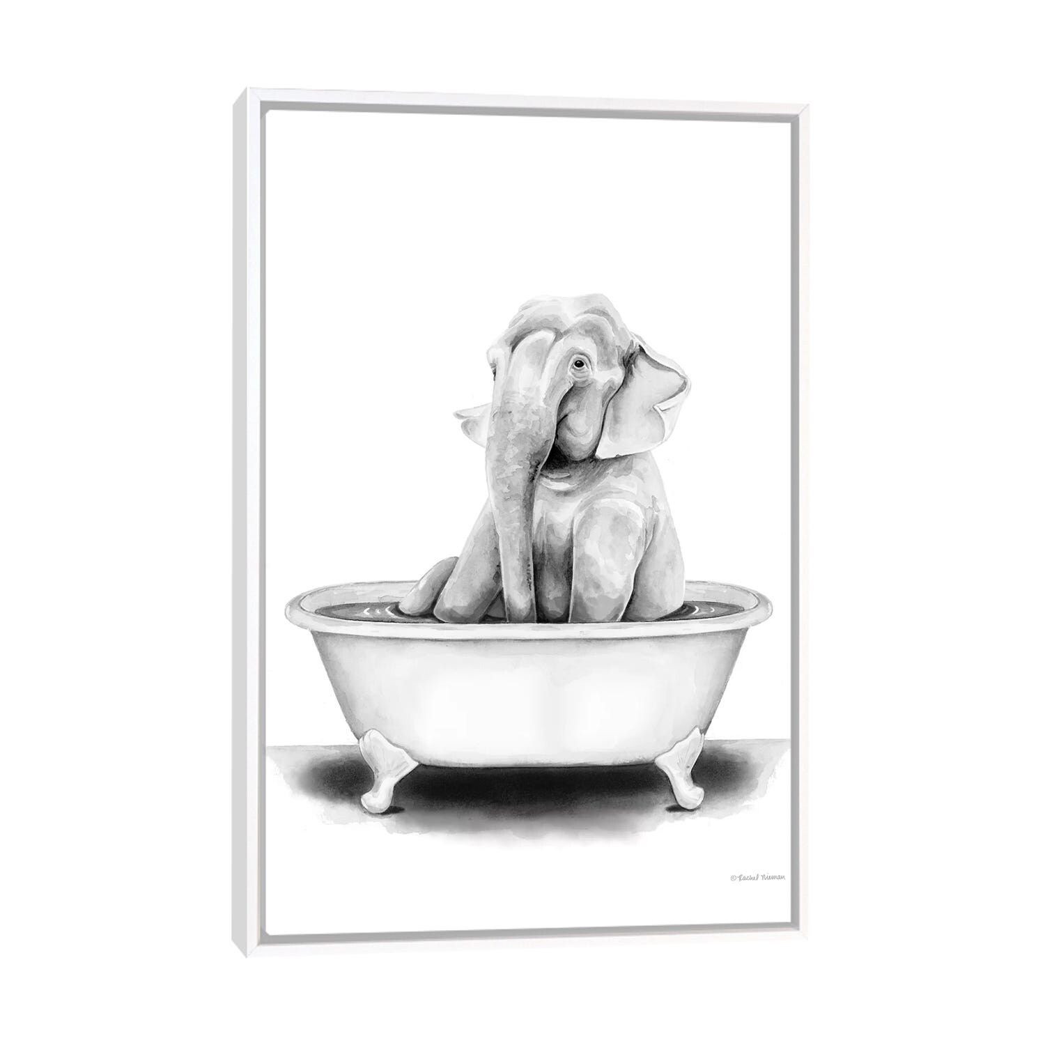 iCanvas "Elephant in Tub" by Rachel Nieman Framed Canvas Print