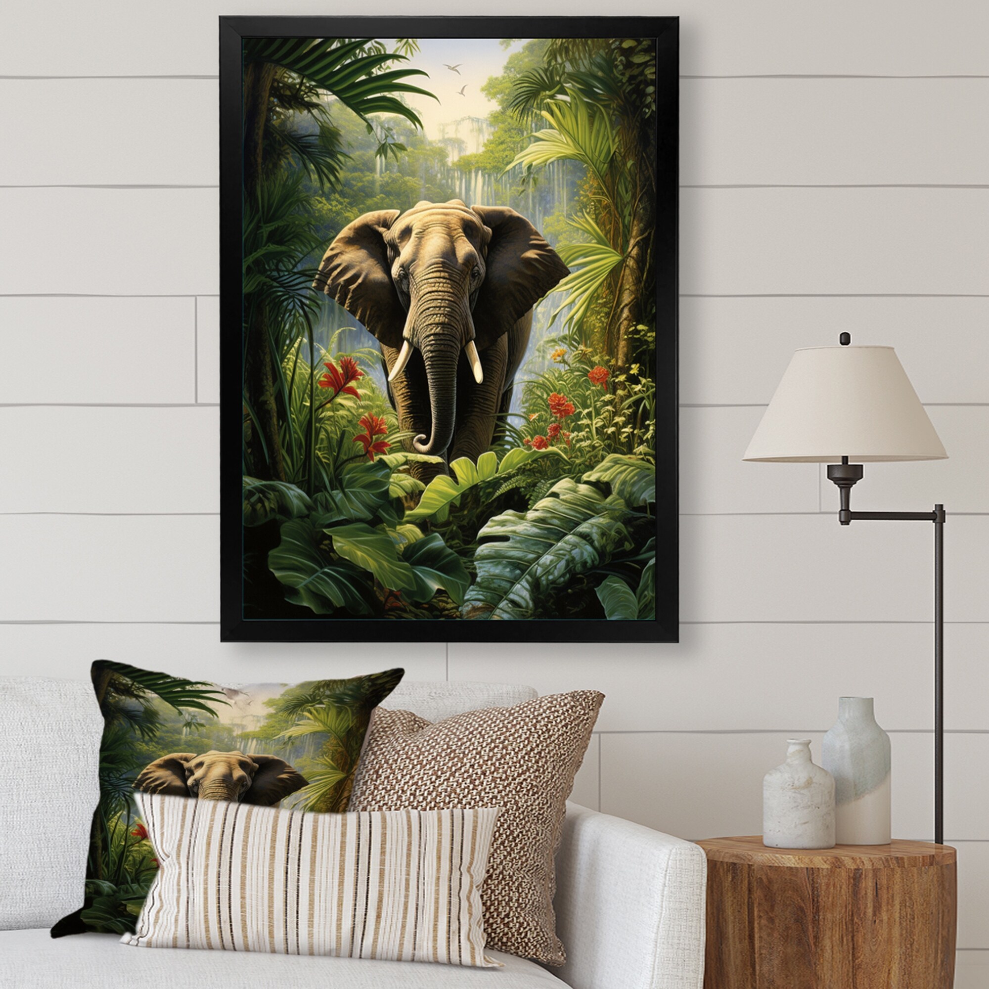 Designart "Elephant Jungle Sanctuary II" Animals Elephant Framed Wall Decor