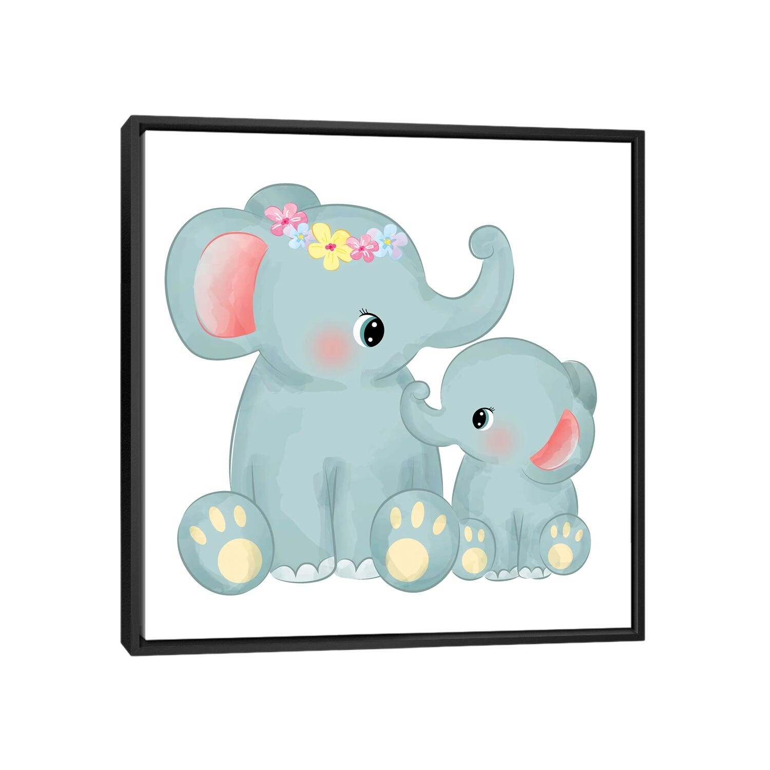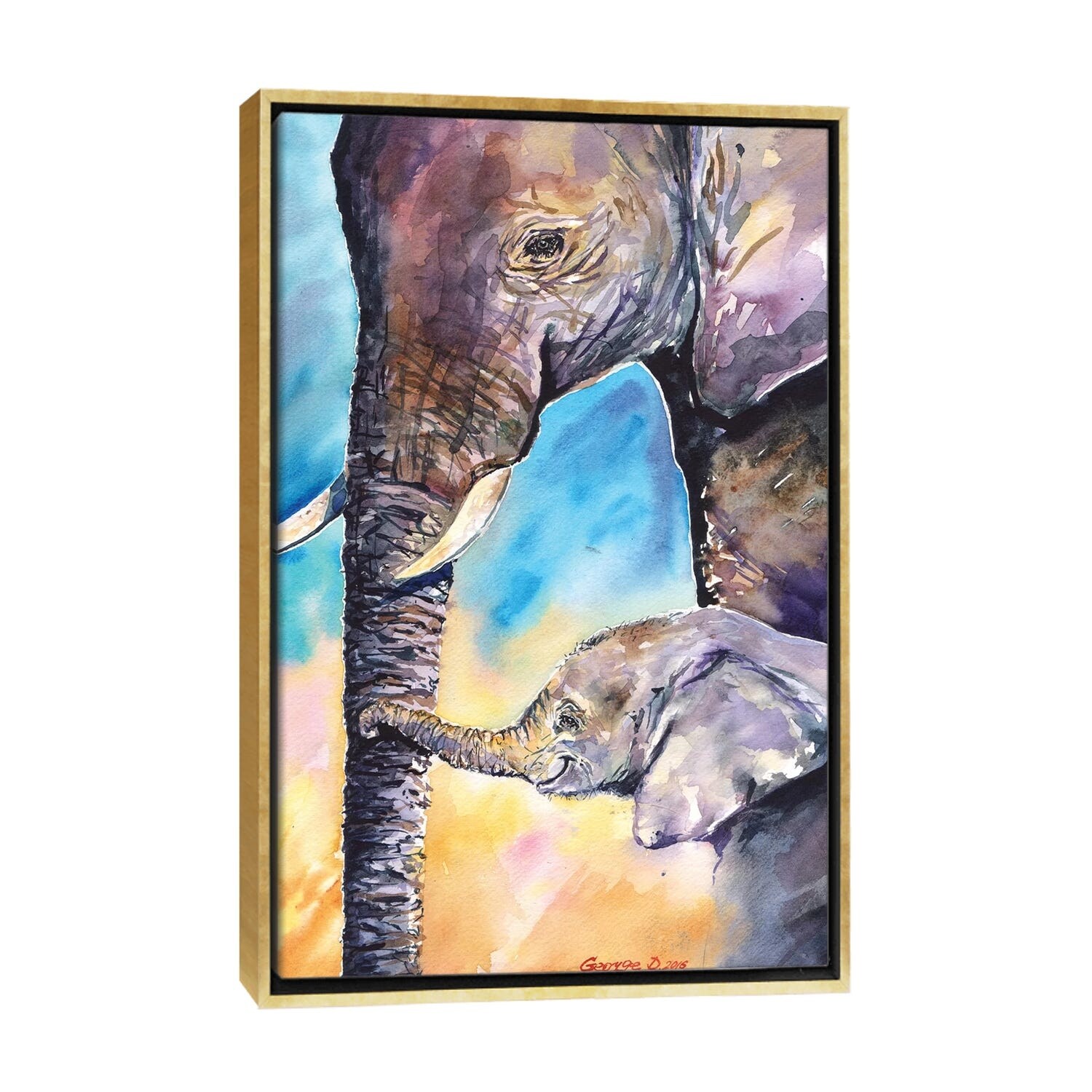 iCanvas "Mommy And Baby Elephant" by Art Mirano Framed
