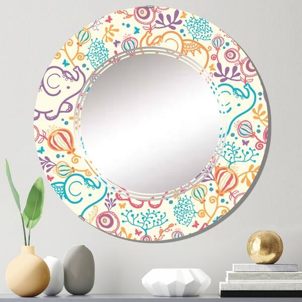 Designart 'Black And Blue Yellow And Purple Elephants' Printed Patterned Wall Mirror