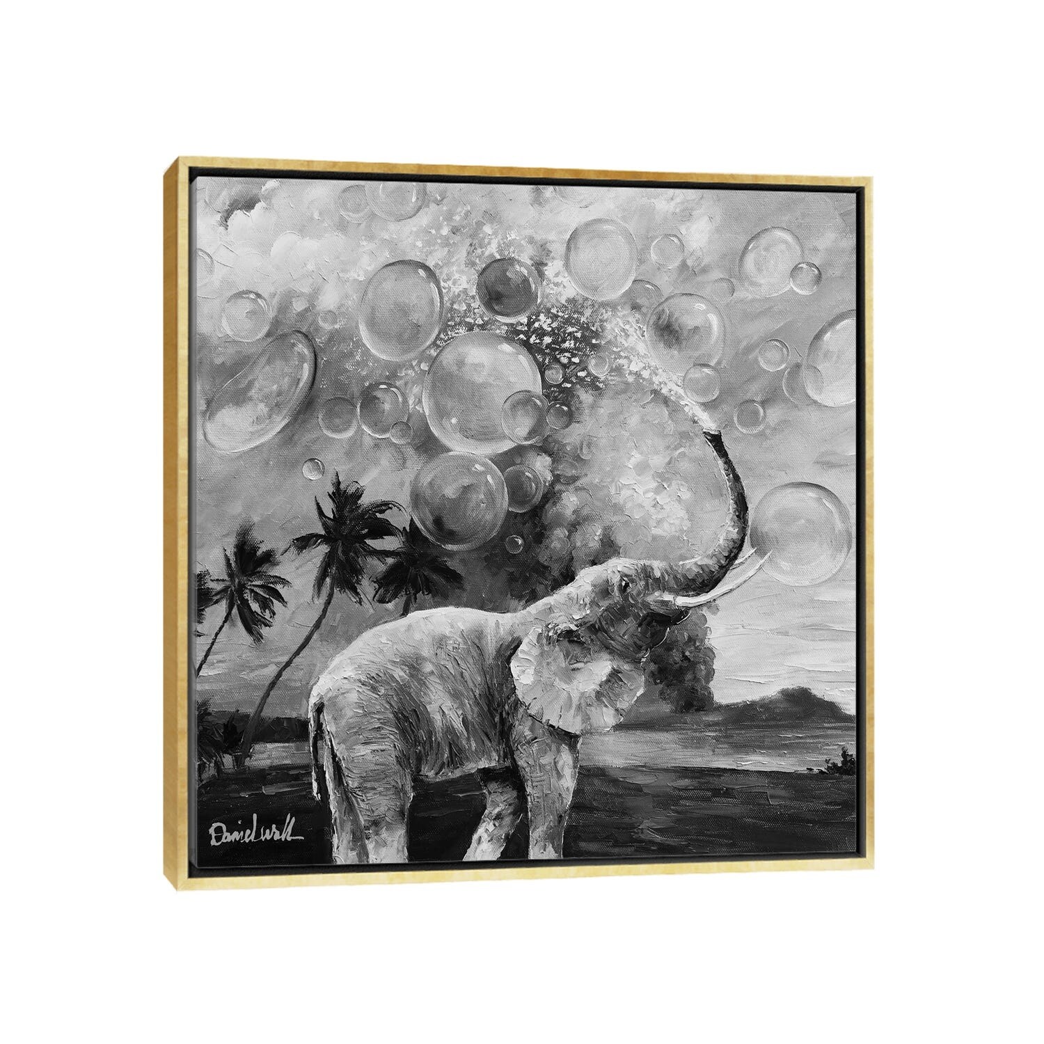 iCanvas "Elephant Fun Black & White" by Daniel Wall Framed