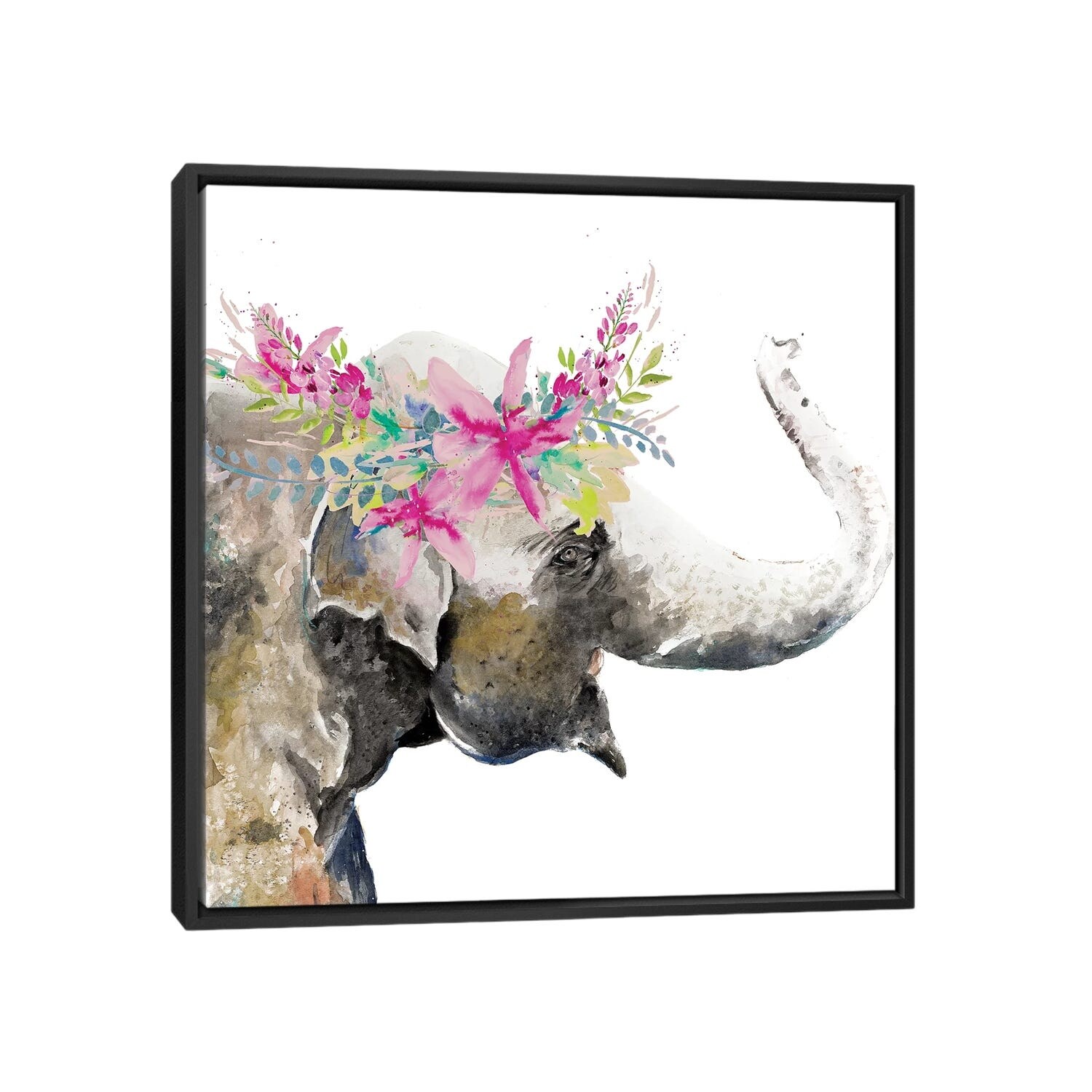 iCanvas "Water Elephant with Flower Crown" by Patricia Pinto Framed Canvas Print