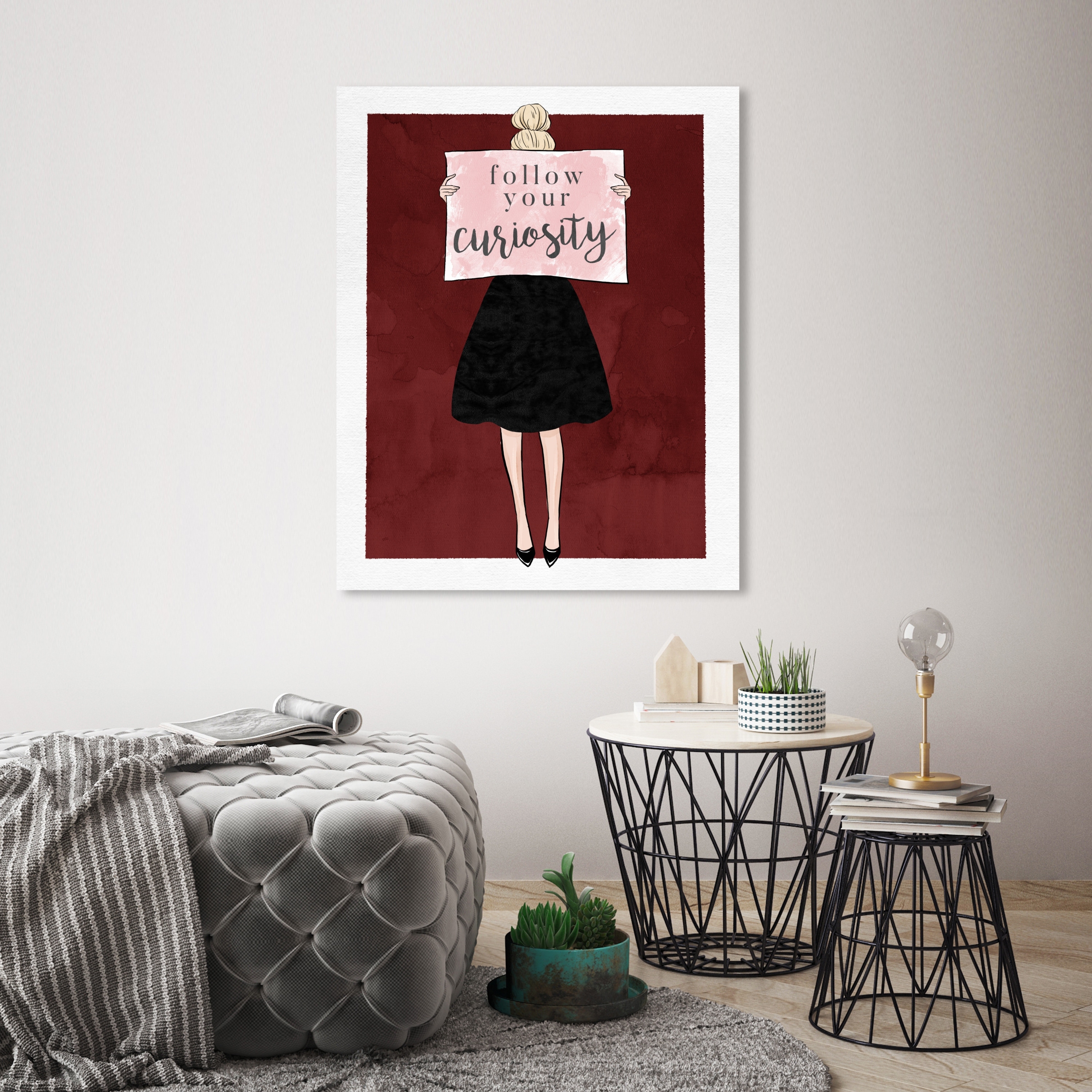 Oliver Gal 'Follow Your Curiosity Flocked' Fashion and Glam Wall Art Canvas Print - Gold, Pink