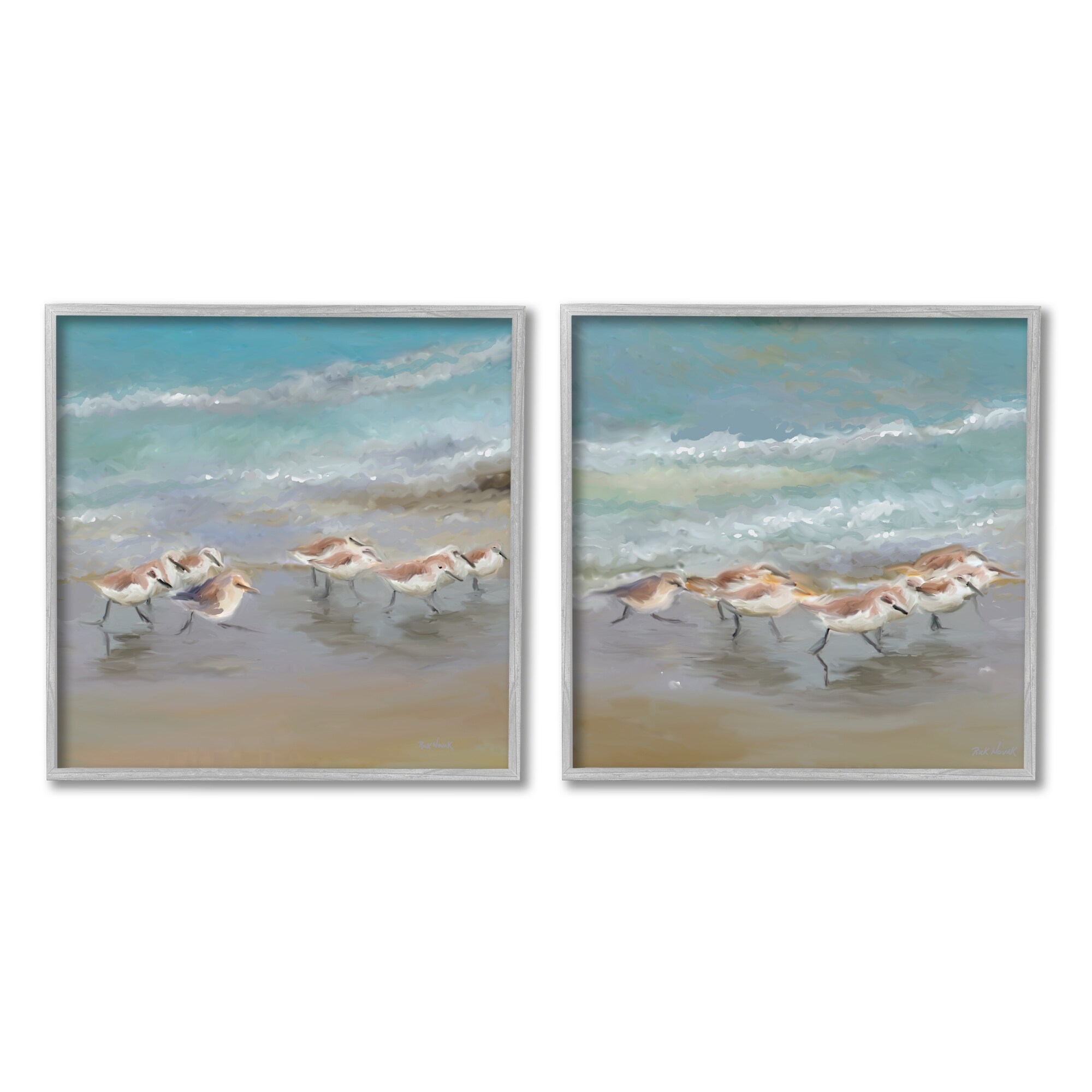 Stupell Industries Sandpipers Flock Summer Beach Sand 2 Piece Framed Giclee Art Set by Rick Novak