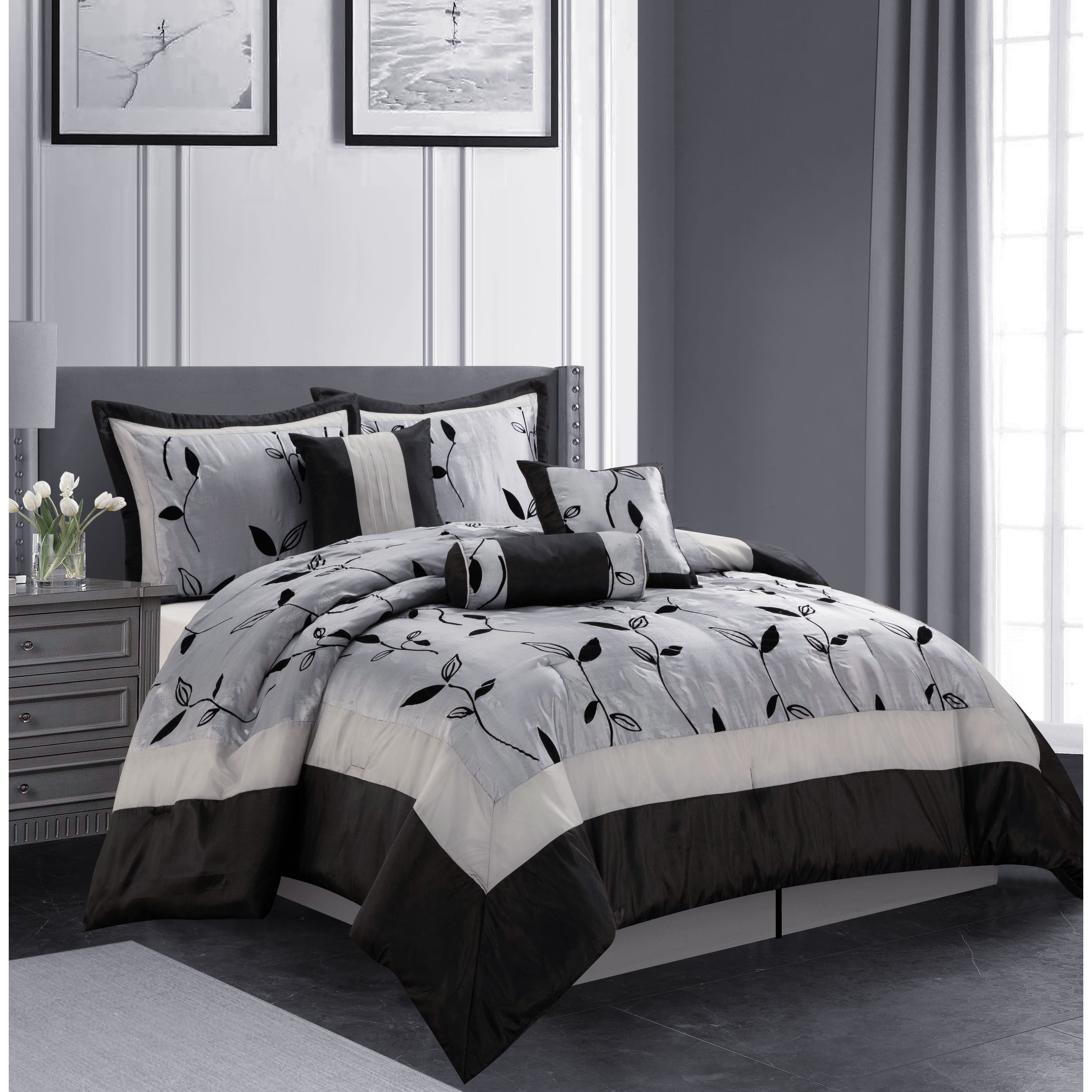 Grand Avenue Jolene 7 Piece Flocked Modern Leaves Comforter Set