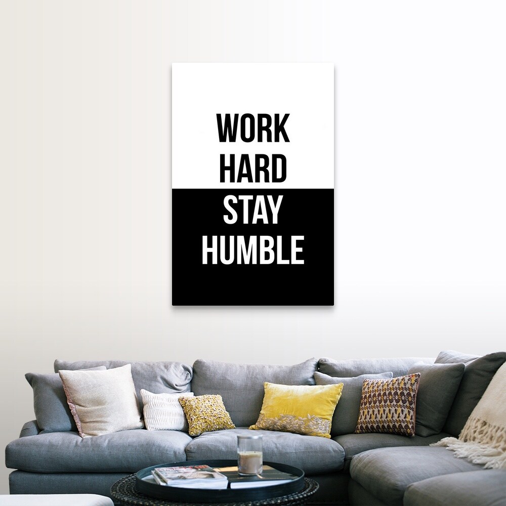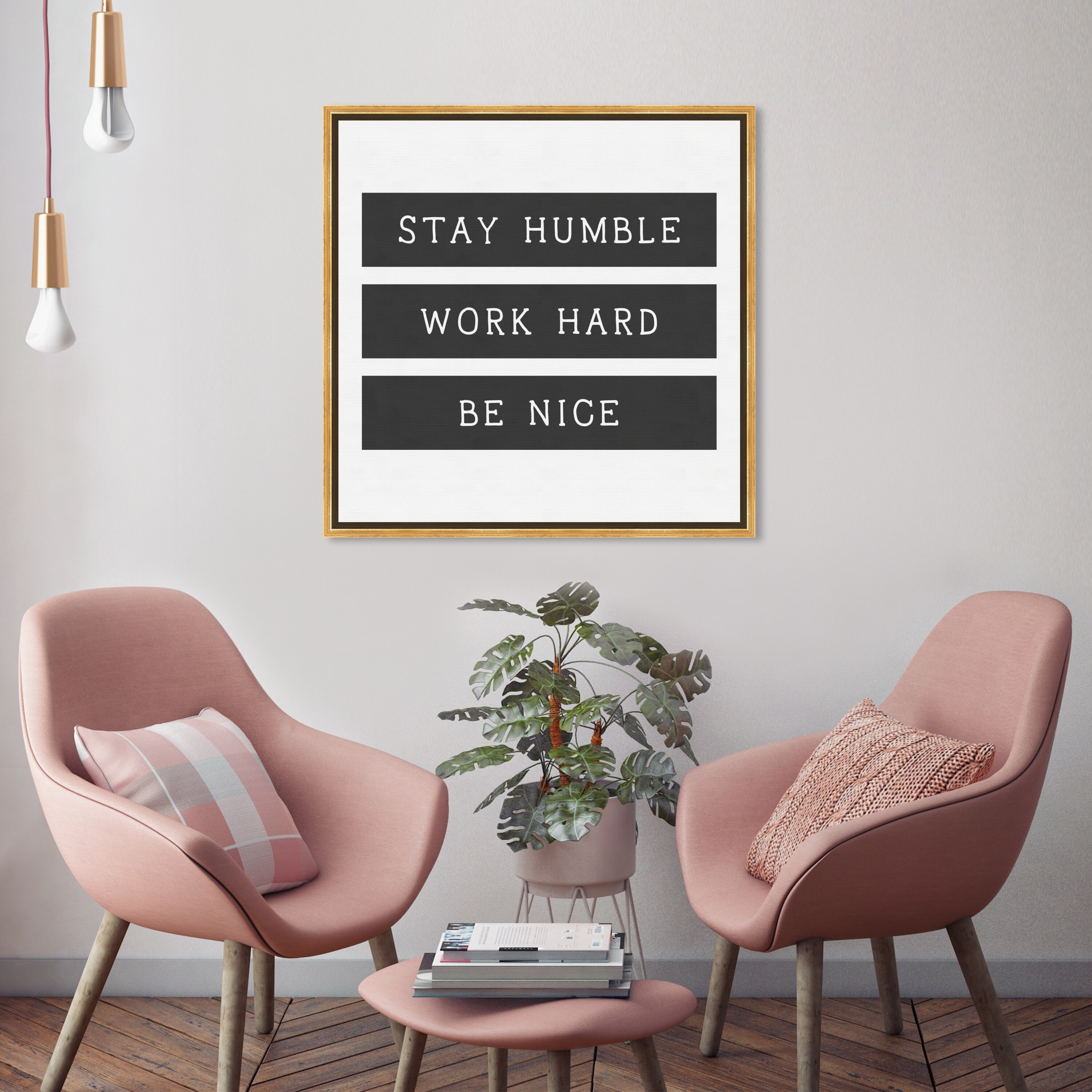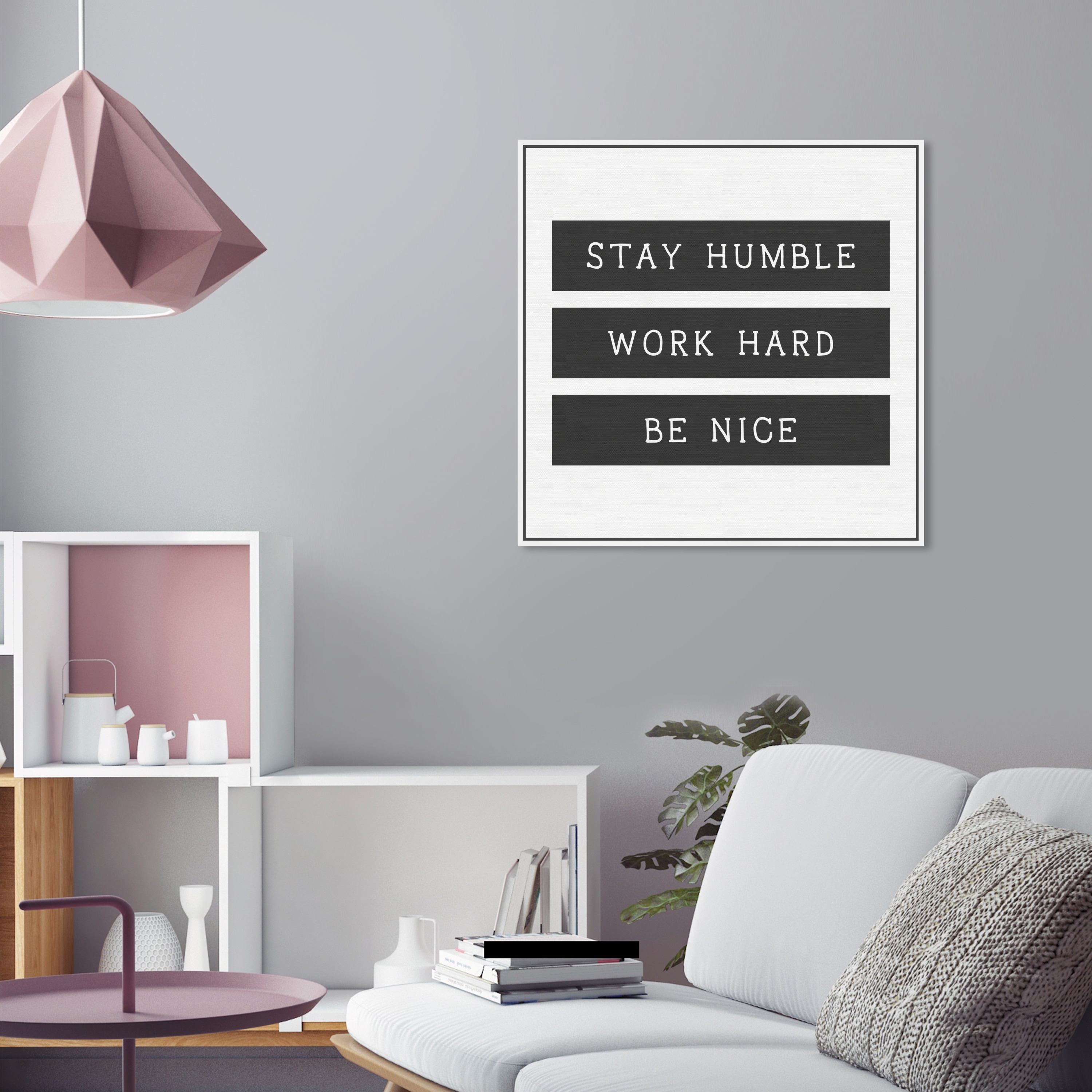 Oliver Gal 'Stay Humble Cut Out' Typography and Quotes Wall Art Framed Canvas Print Inspirational - Gray, White