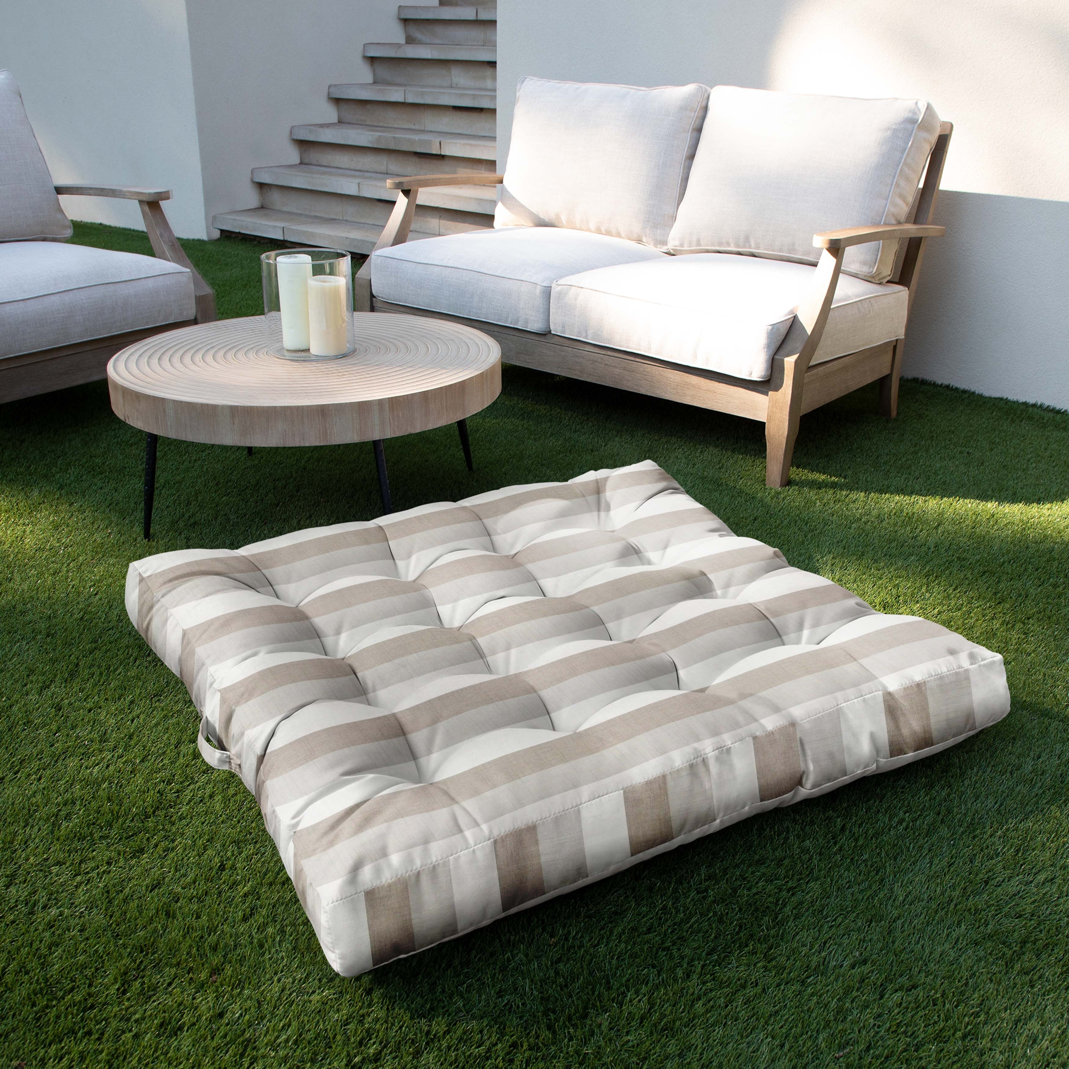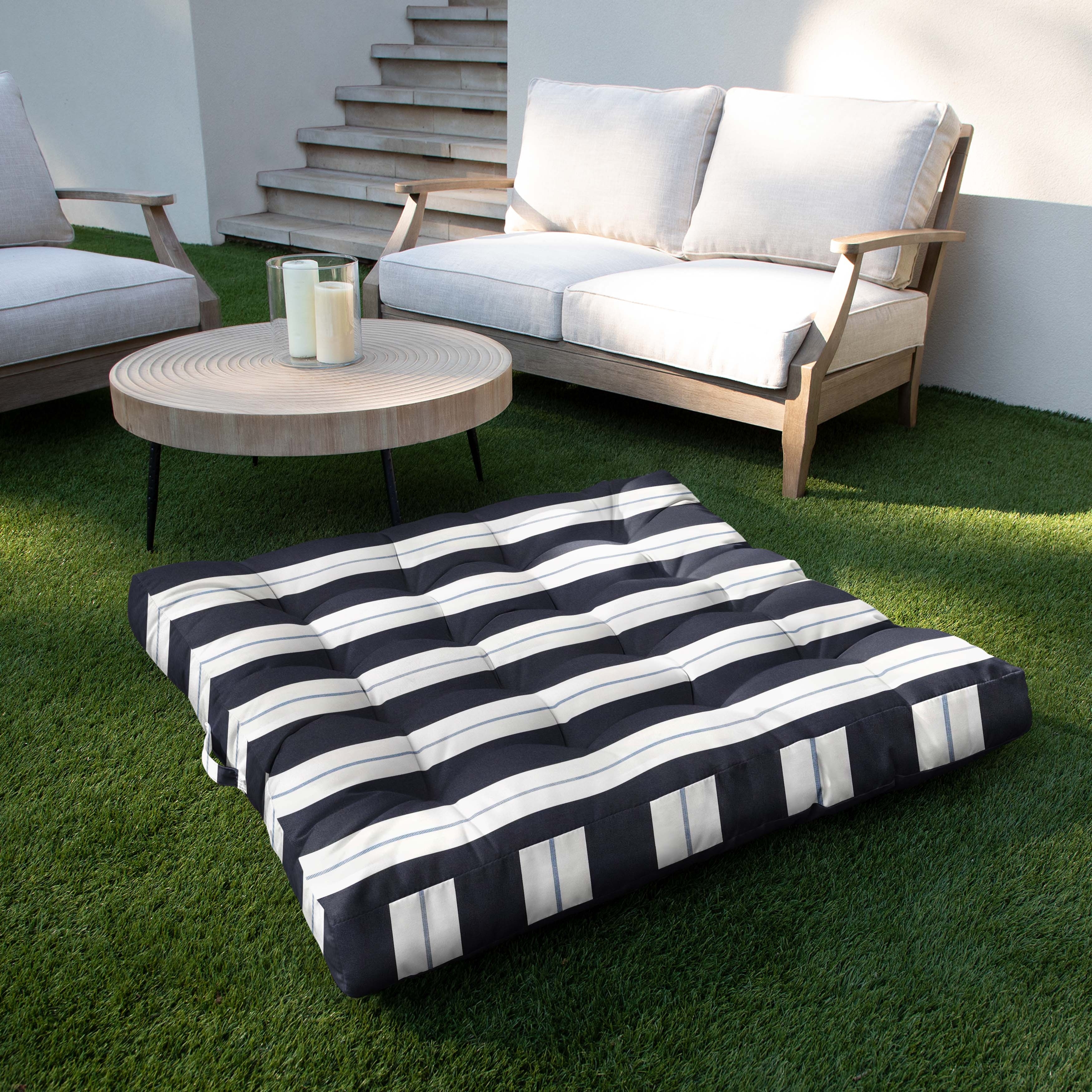 Humble + Haute Sunbrella Striped Large Indoor/Outdoor Square Tufted Floor Pillow with Handle (Single Pillow)