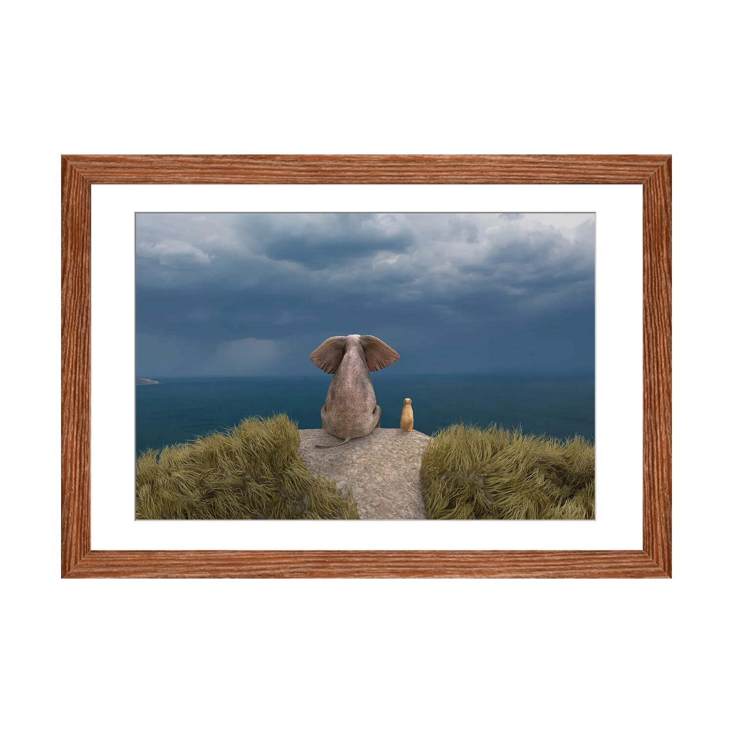 iCanvas "Elephant And Dog Sit By the Sea in A Storm" by Mike Kiev Framed Canvas Print