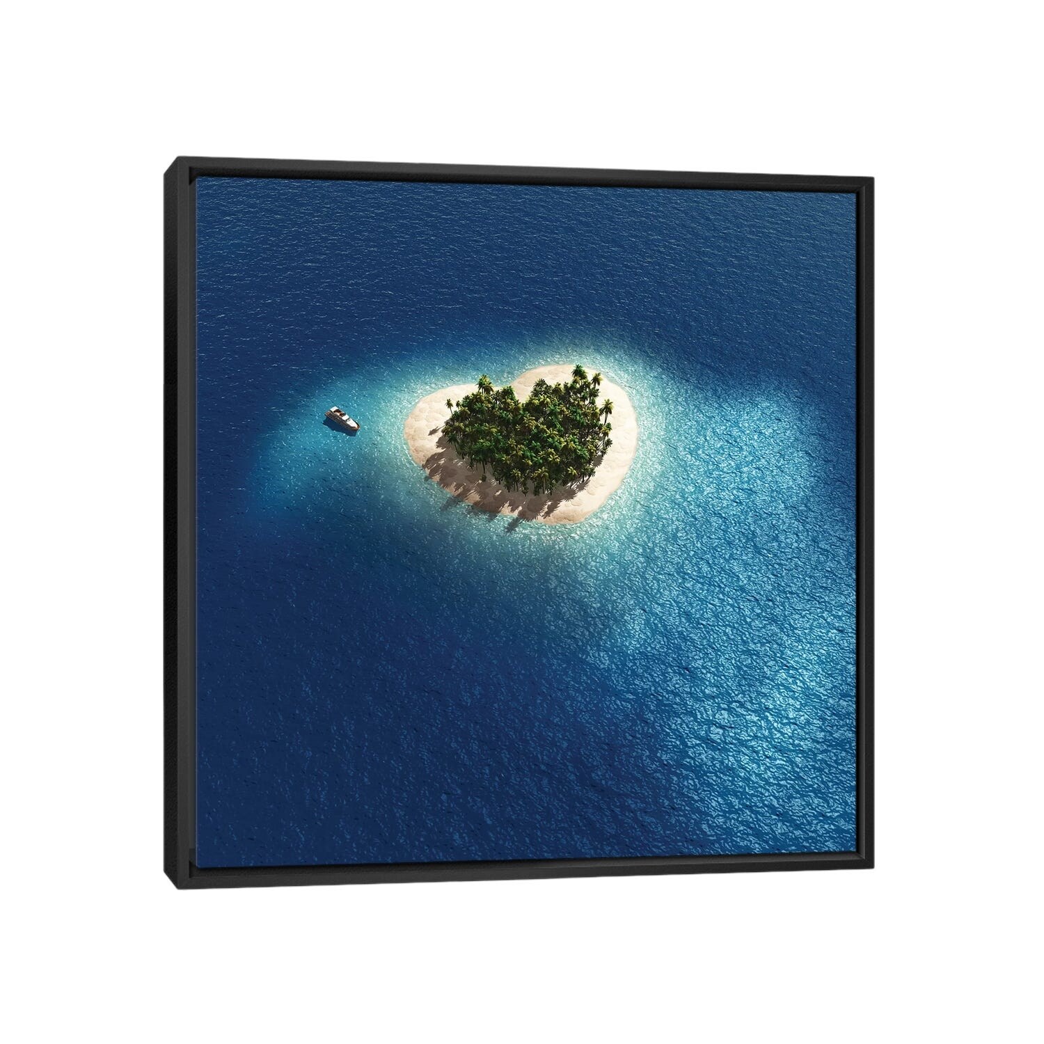 iCanvas "Aerial View of Heart Shape Tropical Island" by Mike Kiev Framed Canvas Print