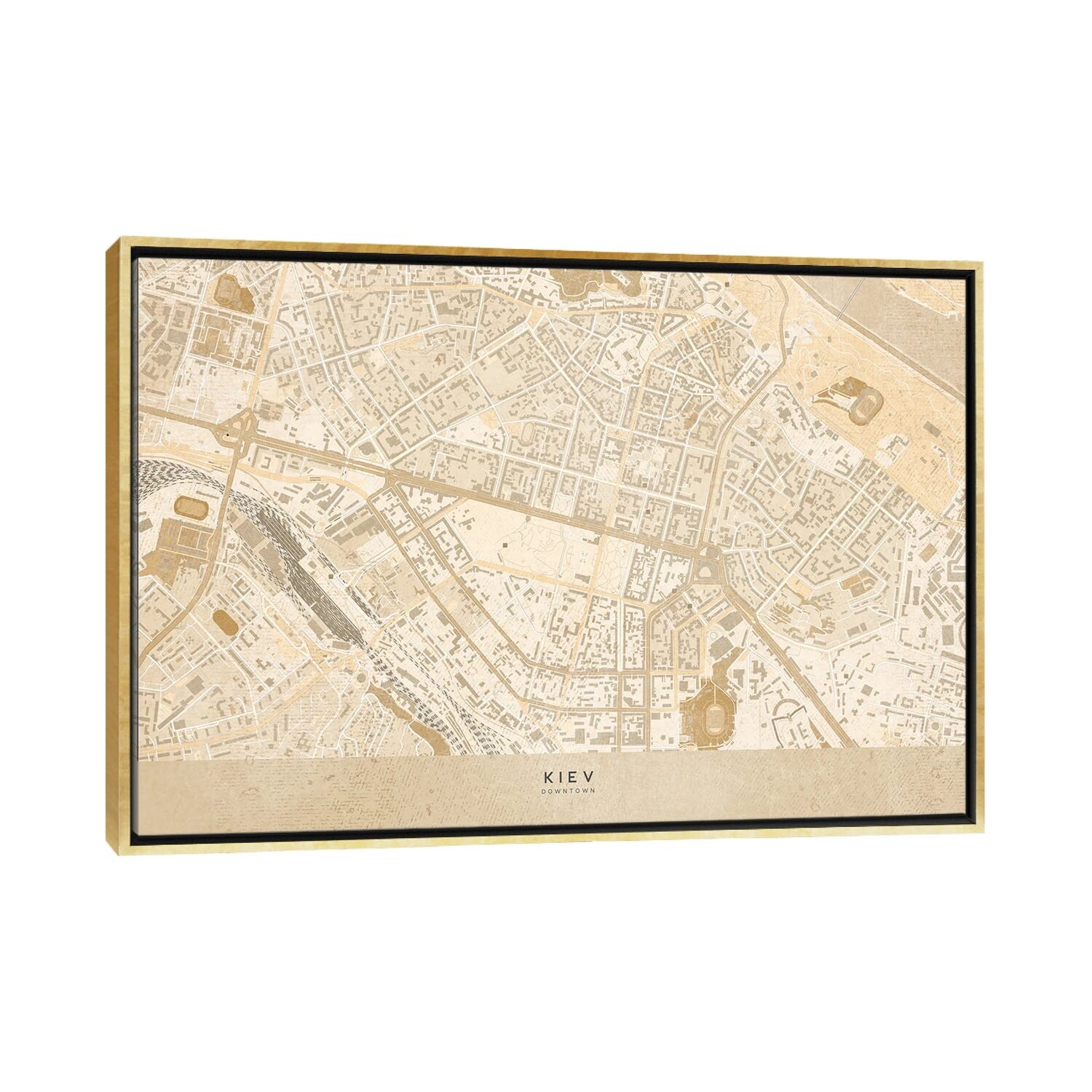 iCanvas "Map Of Kiev in Vintage Sepia" by blursbyai Framed