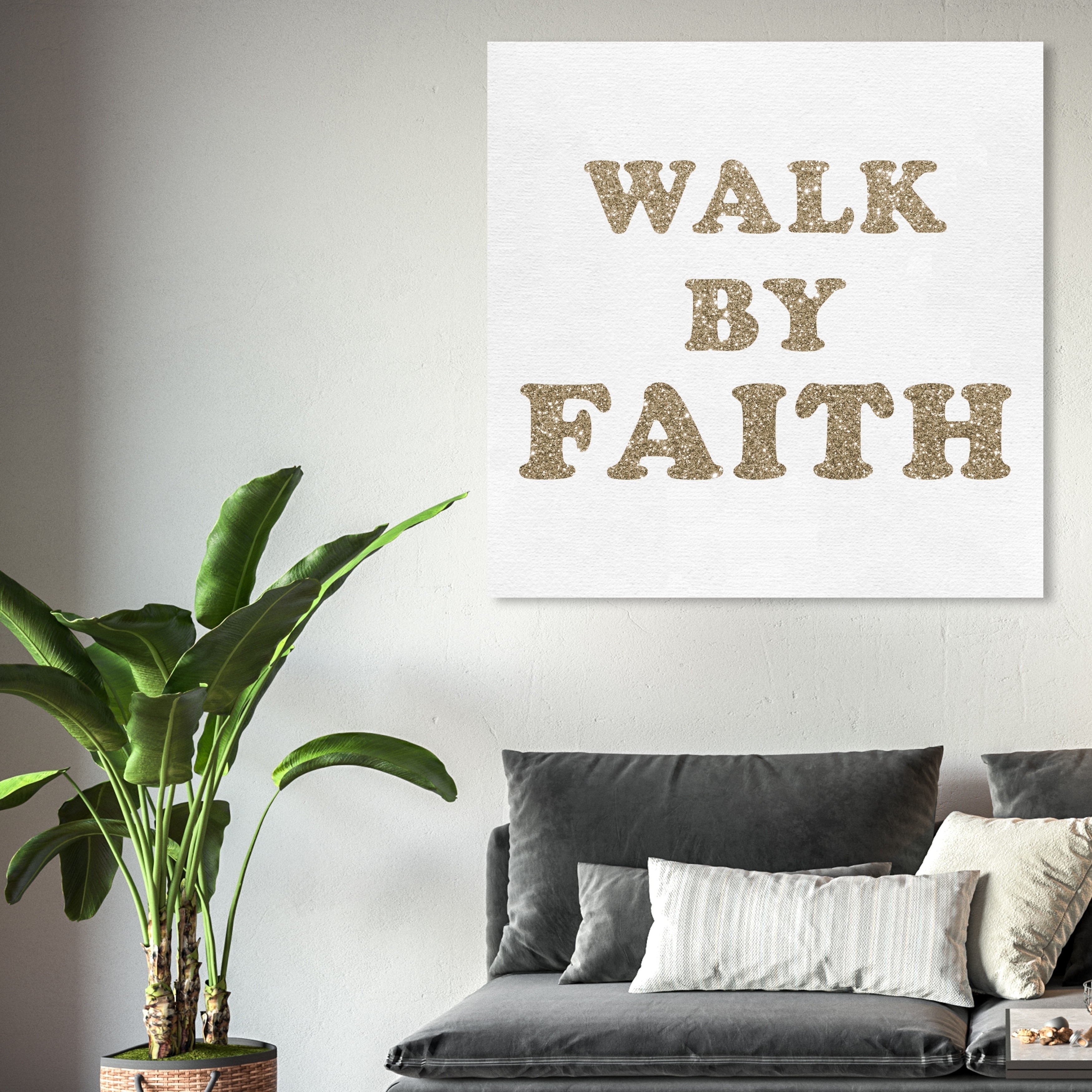 Oliver Gal 'Walk by Faith Gold Glitter' Typography and Quotes Wall Art Canvas Print - Gold, White