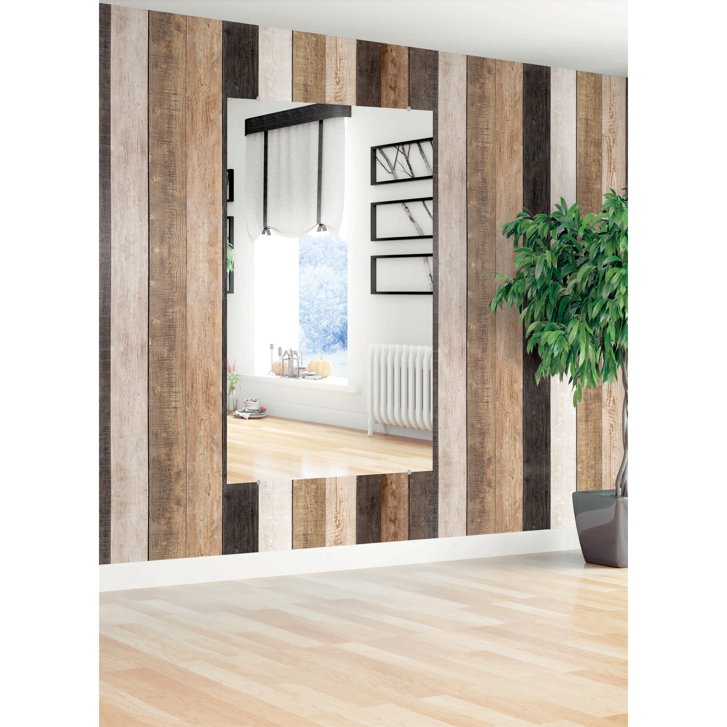Modern Rustic Weathered Grey Wooden Wall Mirror