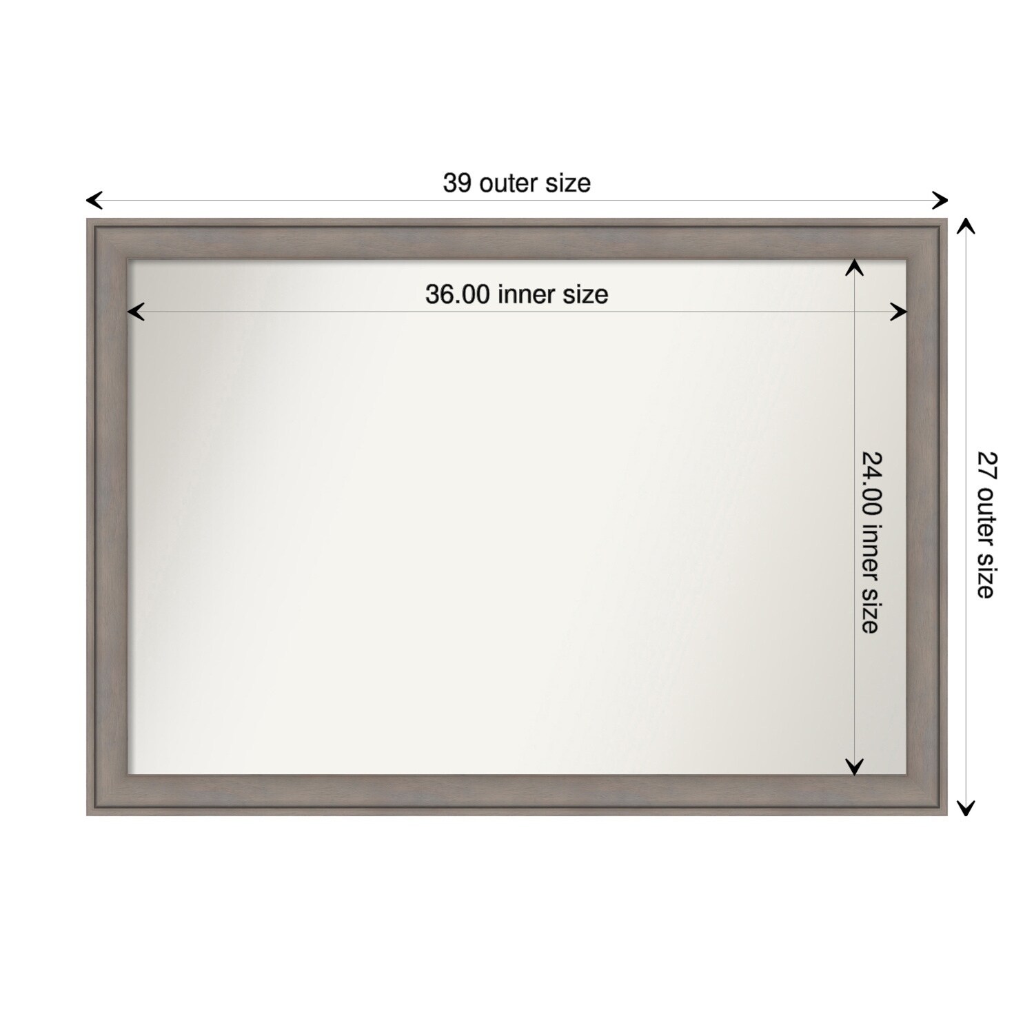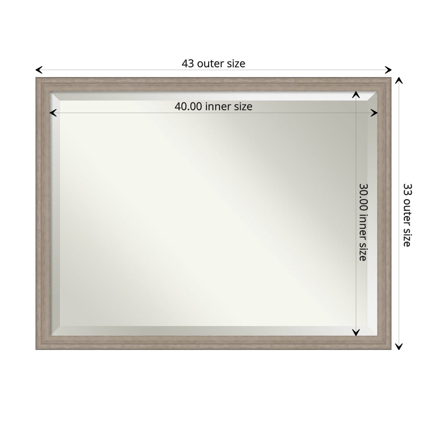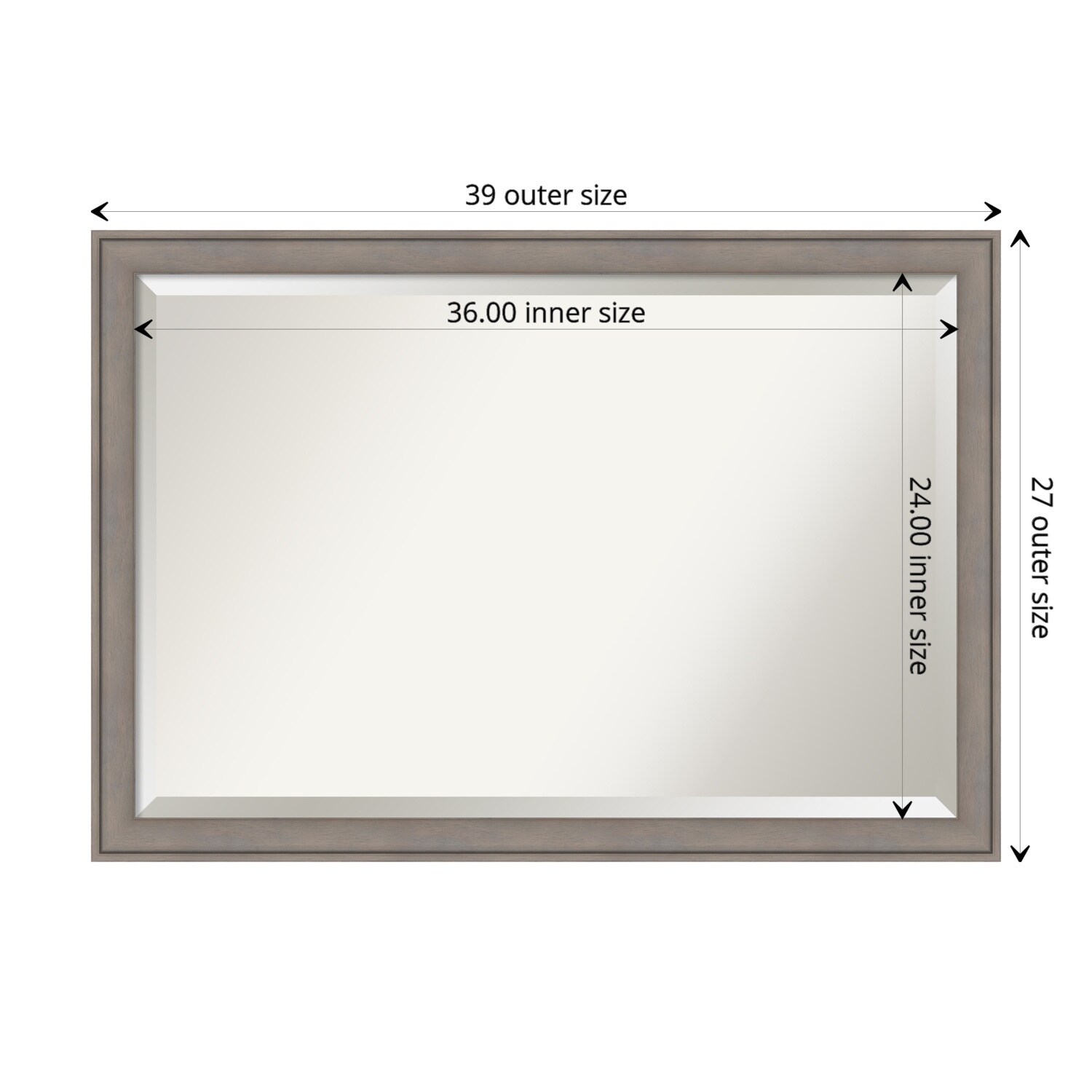 Beveled Wood Wall Mirror - Greywash Frame - Mirror Size: 36 x 24