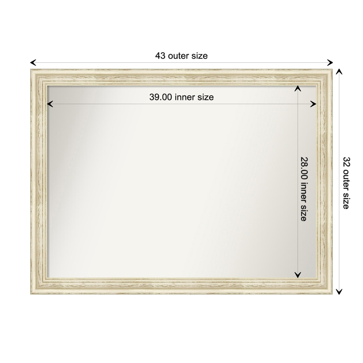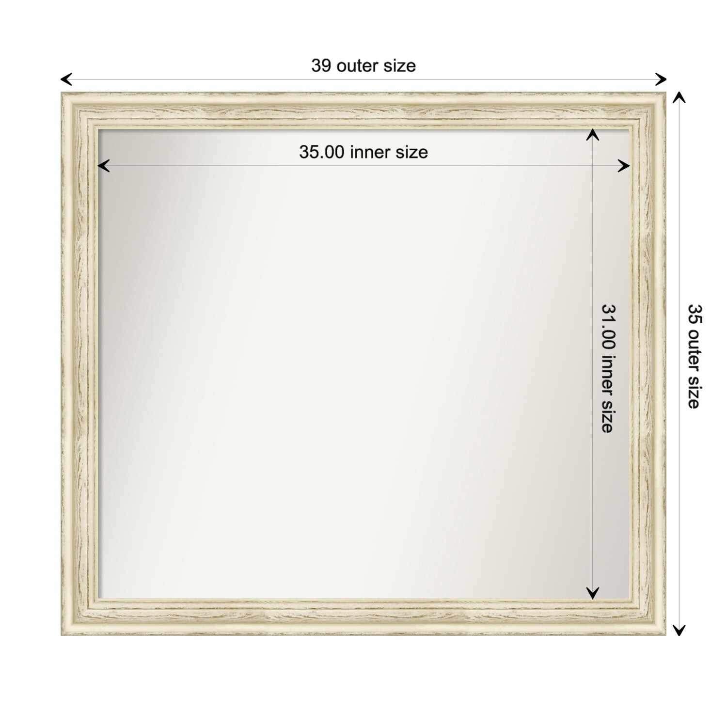 Non-Beveled Wood Wall Mirror - Distressed Cream Frame - Distressed Cream