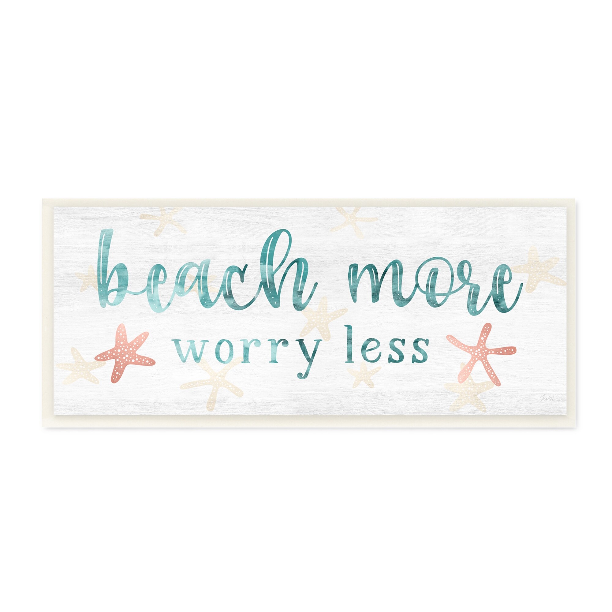 Stupell Beach More Worry Less Nautical Sign Red Starfish Wood Wall Art, 17 x 7 - Blue