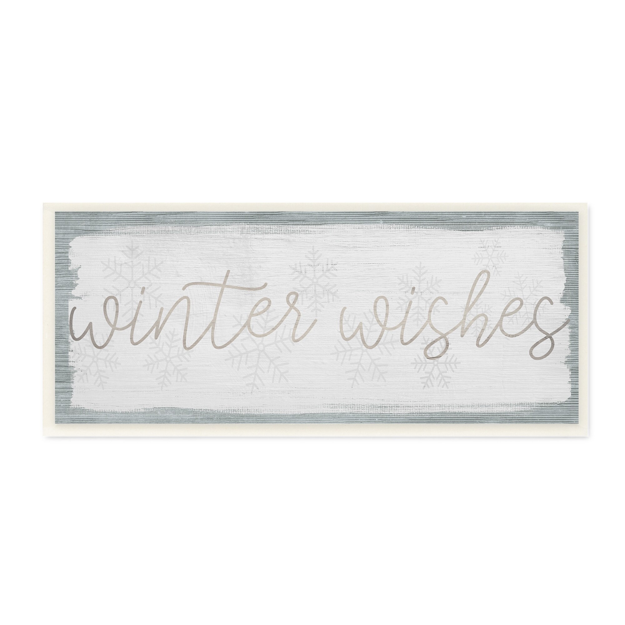 Stupell Rustic Winter Wishes Sentiment Soft Snowflake Pattern Wood Wall Art, 17 x 7 - Grey