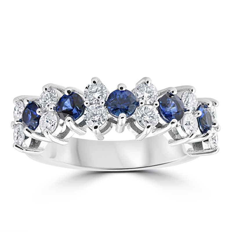 14k White Gold 2 1/2 cttw Blue Sapphire & Diamond Wedding Anniversary Ring
