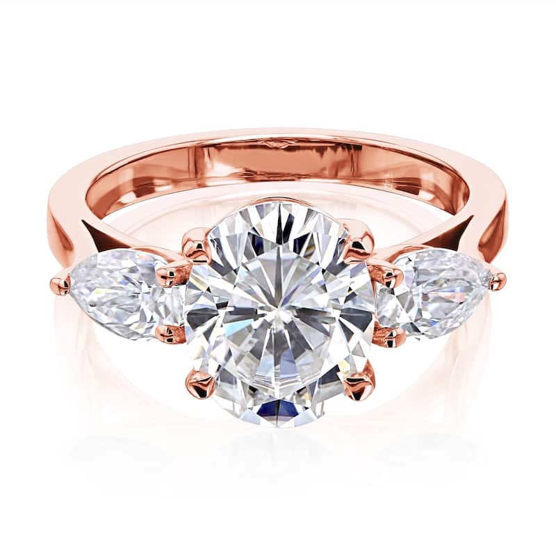 Annello by Kobelli 3.86ct TGW Three Stone Trellis X-Prong Oval and Pear Moissanite Engagement Ring in 14k Gold (GH/VS)