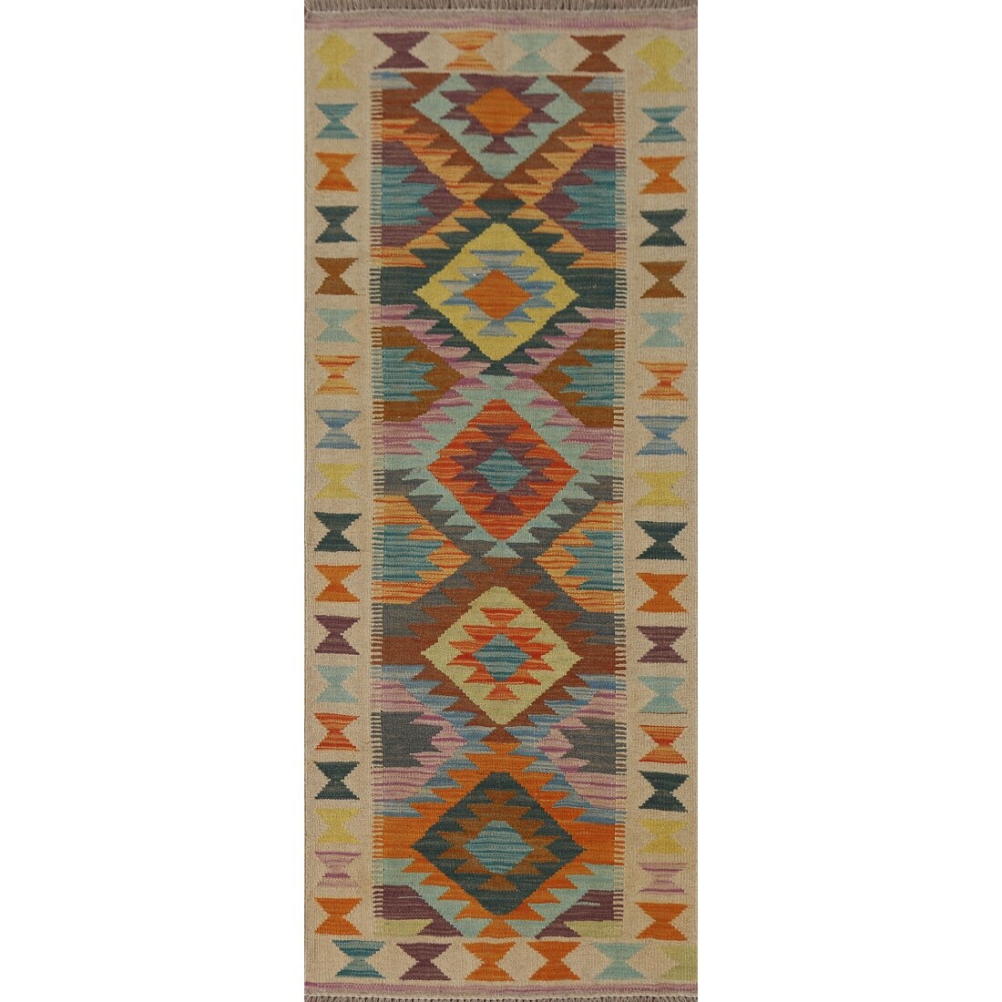 Multicolor Kilim Runner Rug Hand-Woven Wool Carpet - 2'3"x 6'5"