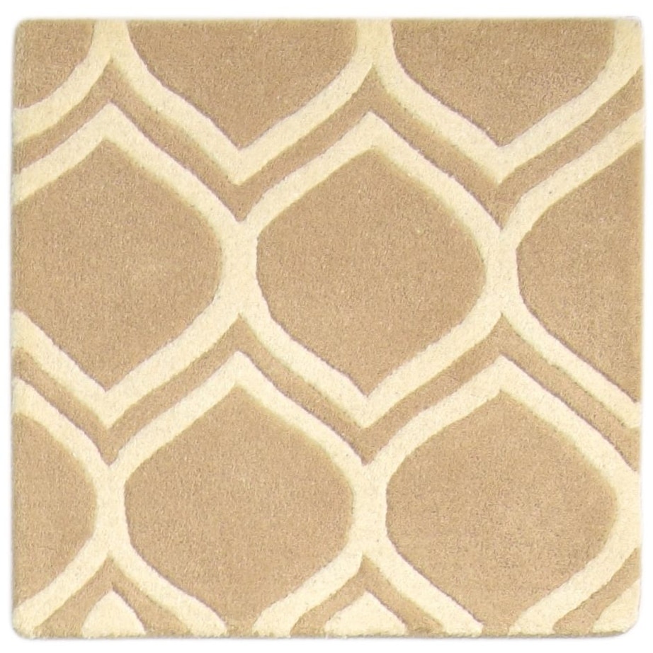 One of a Kind Hand-Tufted Modern & Contemporary 2' x 3' Trellis Wool Beige Rug - 2'2"x2'2"
