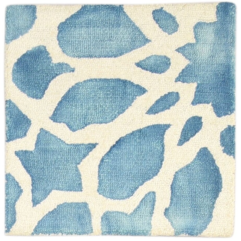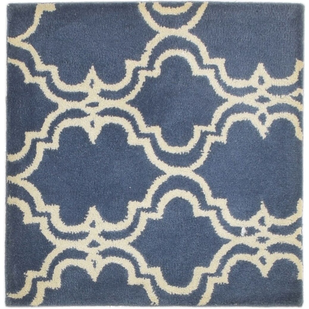One of a Kind Hand-Tufted Modern & Contemporary 2' x 3' Trellis Wool Blue Rug - 2'2"x2'2"