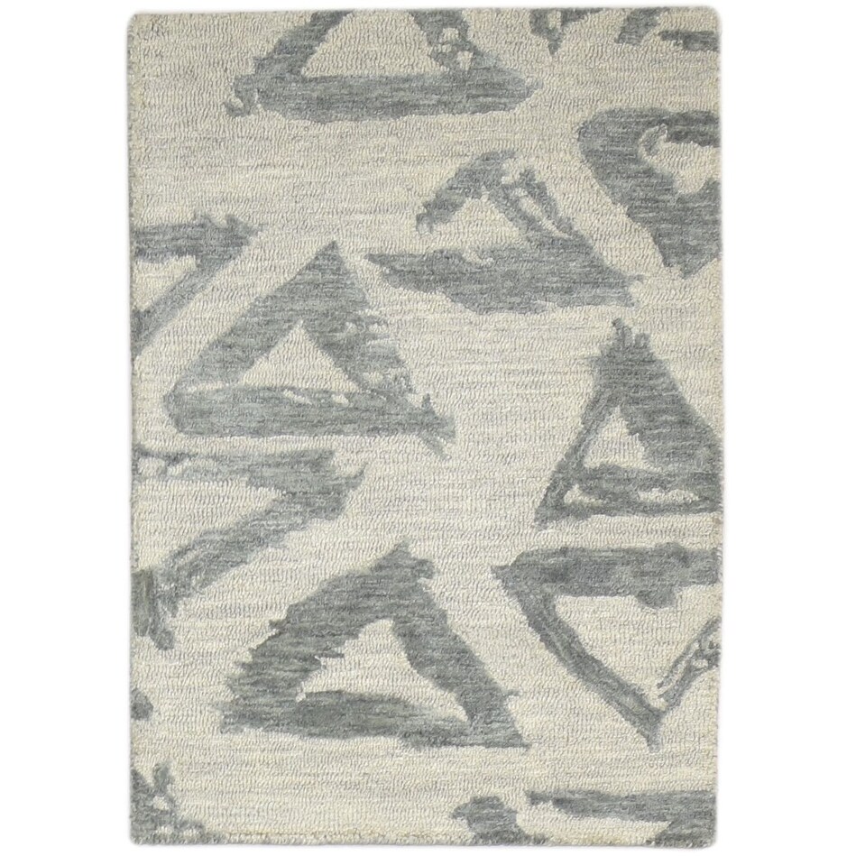 One of a Kind Hand-Tufted Modern 2' x 3' Geometric Wool Grey Rug - 2' x 3'